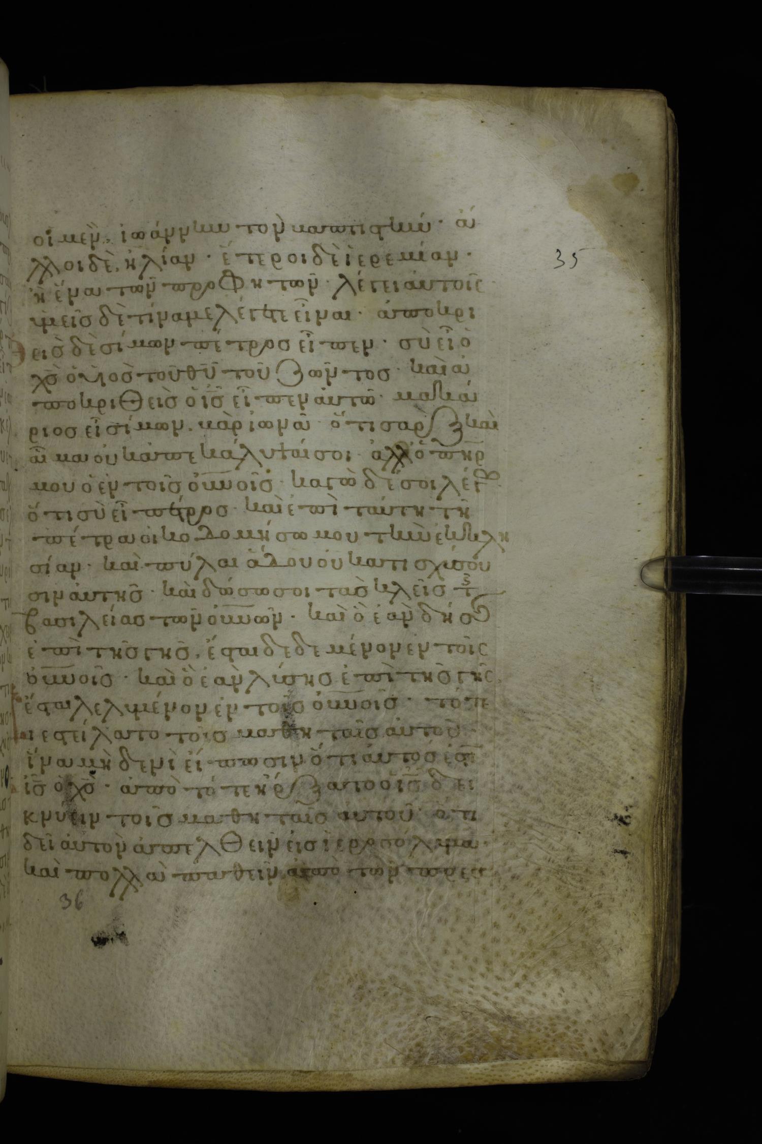 Twelfth century minuscule of the Gospels on parchment; 230 leaves, 1 column, 24-26 lines per column. Images were taken at the National Library of Greece in Athens.