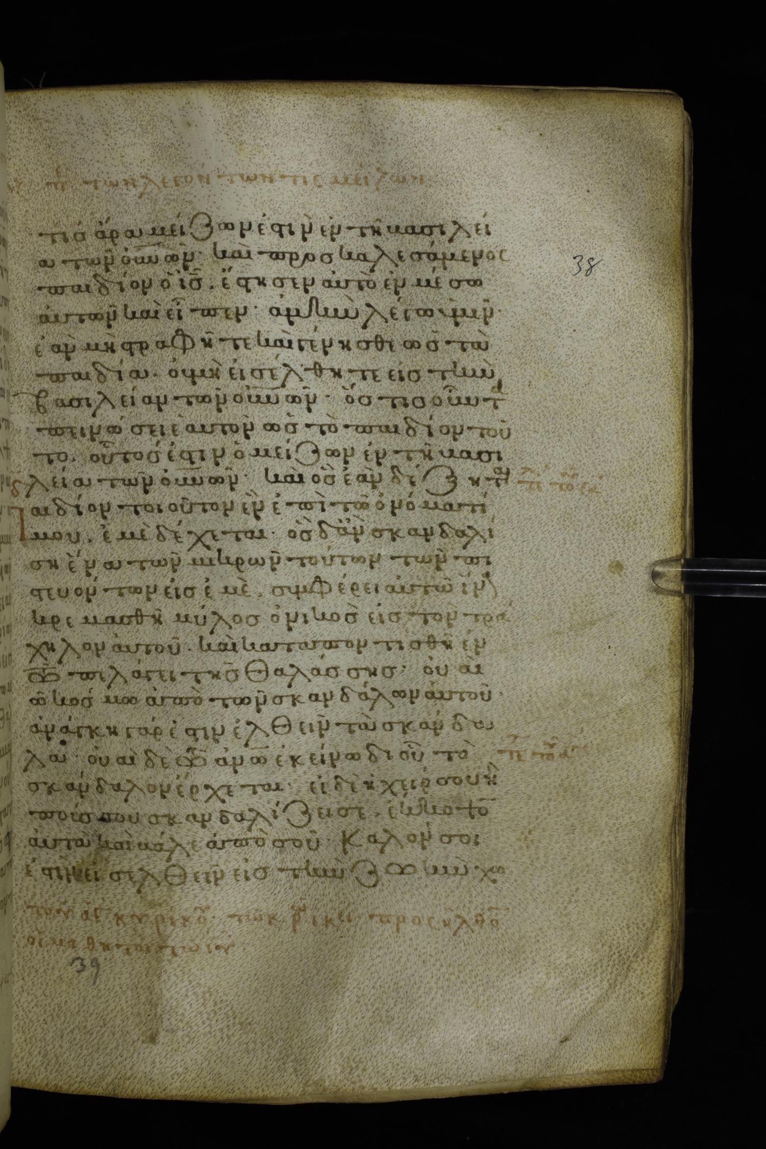 Twelfth century minuscule of the Gospels on parchment; 230 leaves, 1 column, 24-26 lines per column. Images were taken at the National Library of Greece in Athens.