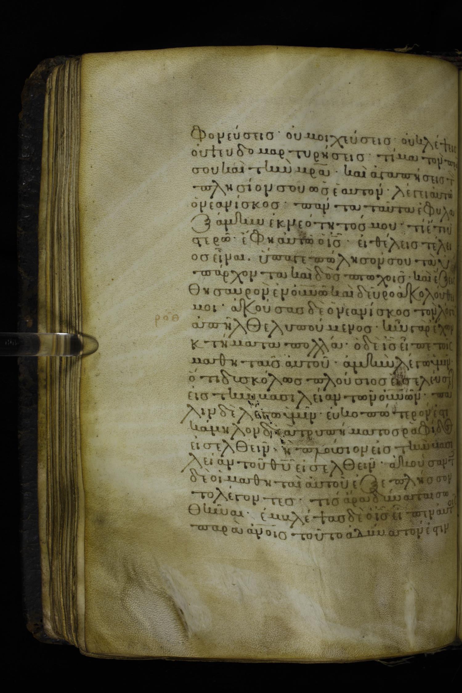Twelfth century minuscule of the Gospels on parchment; 230 leaves, 1 column, 24-26 lines per column. Images were taken at the National Library of Greece in Athens.