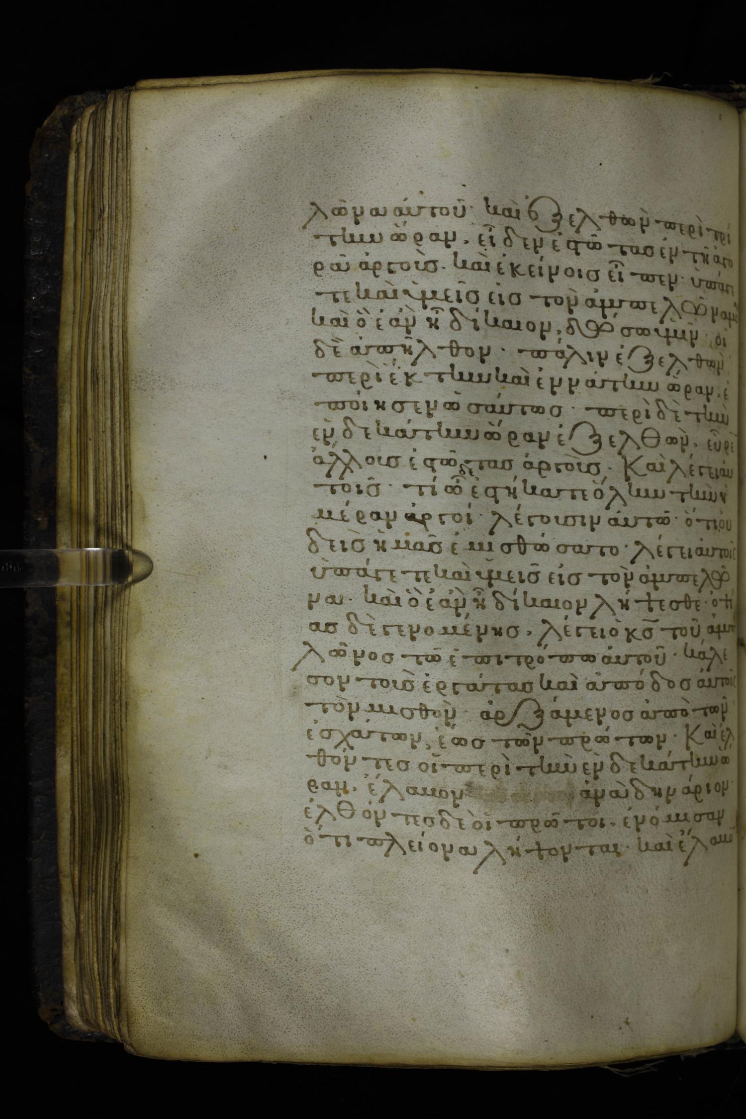 Twelfth century minuscule of the Gospels on parchment; 230 leaves, 1 column, 24-26 lines per column. Images were taken at the National Library of Greece in Athens.