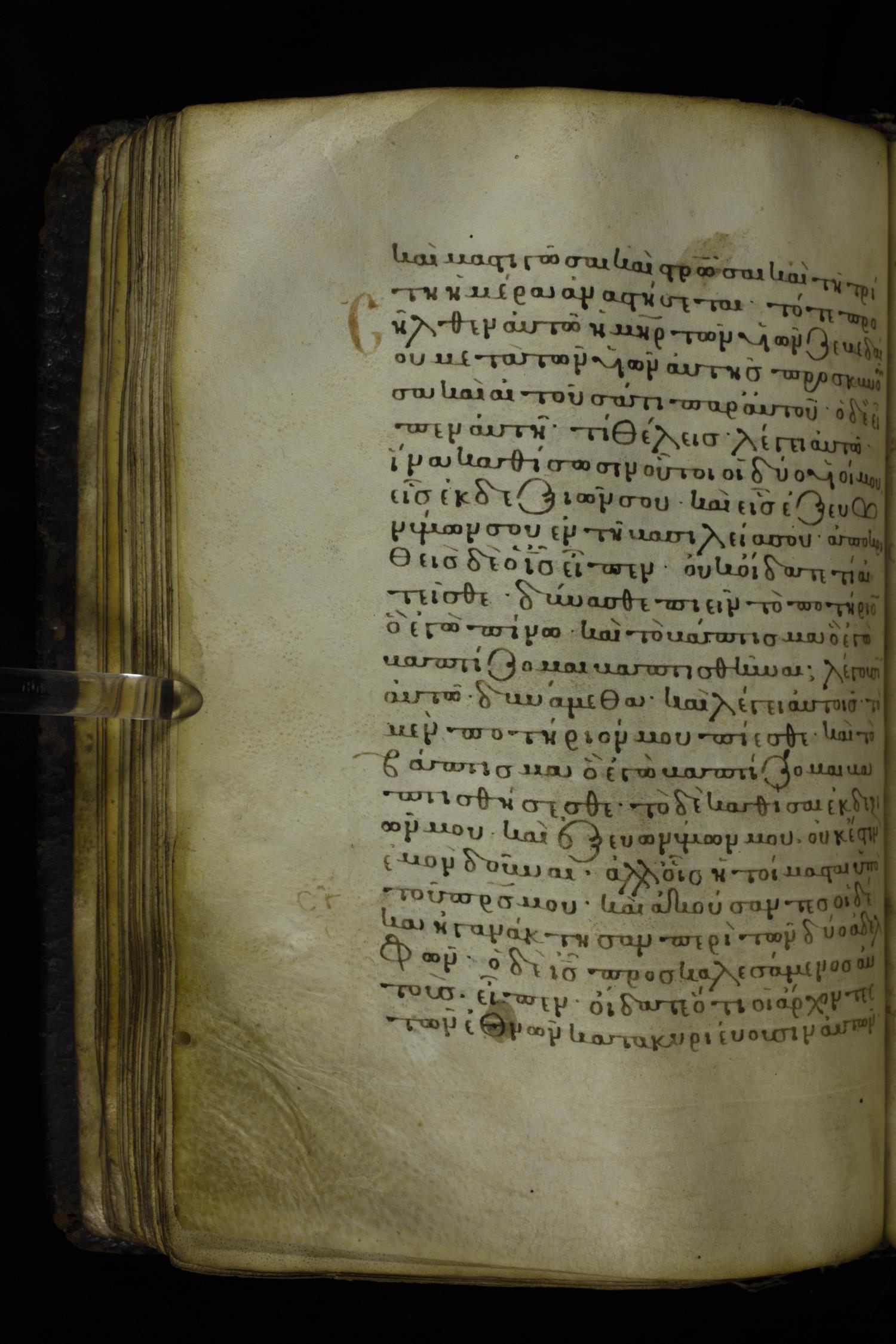 Twelfth century minuscule of the Gospels on parchment; 230 leaves, 1 column, 24-26 lines per column. Images were taken at the National Library of Greece in Athens.
