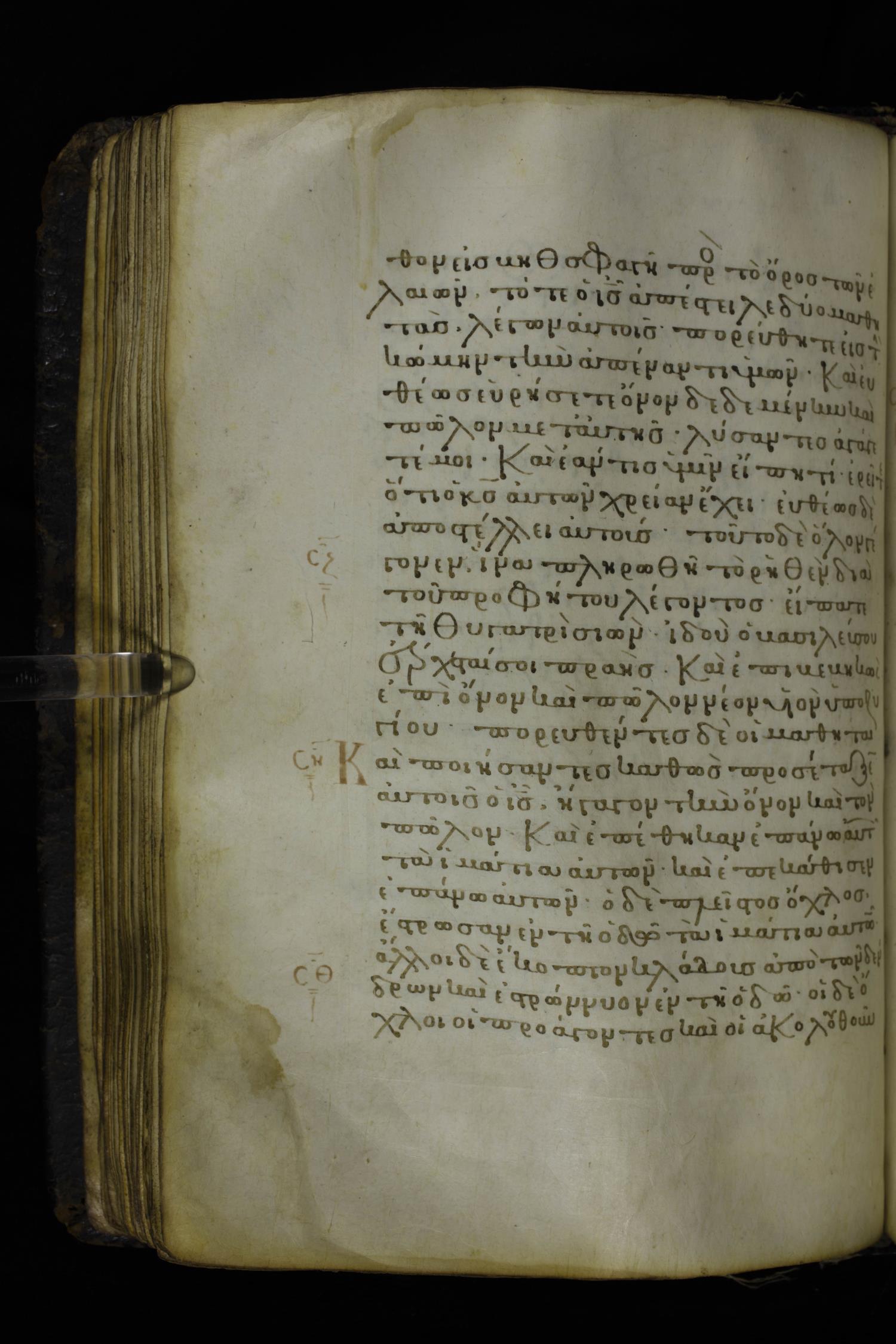 Twelfth century minuscule of the Gospels on parchment; 230 leaves, 1 column, 24-26 lines per column. Images were taken at the National Library of Greece in Athens.