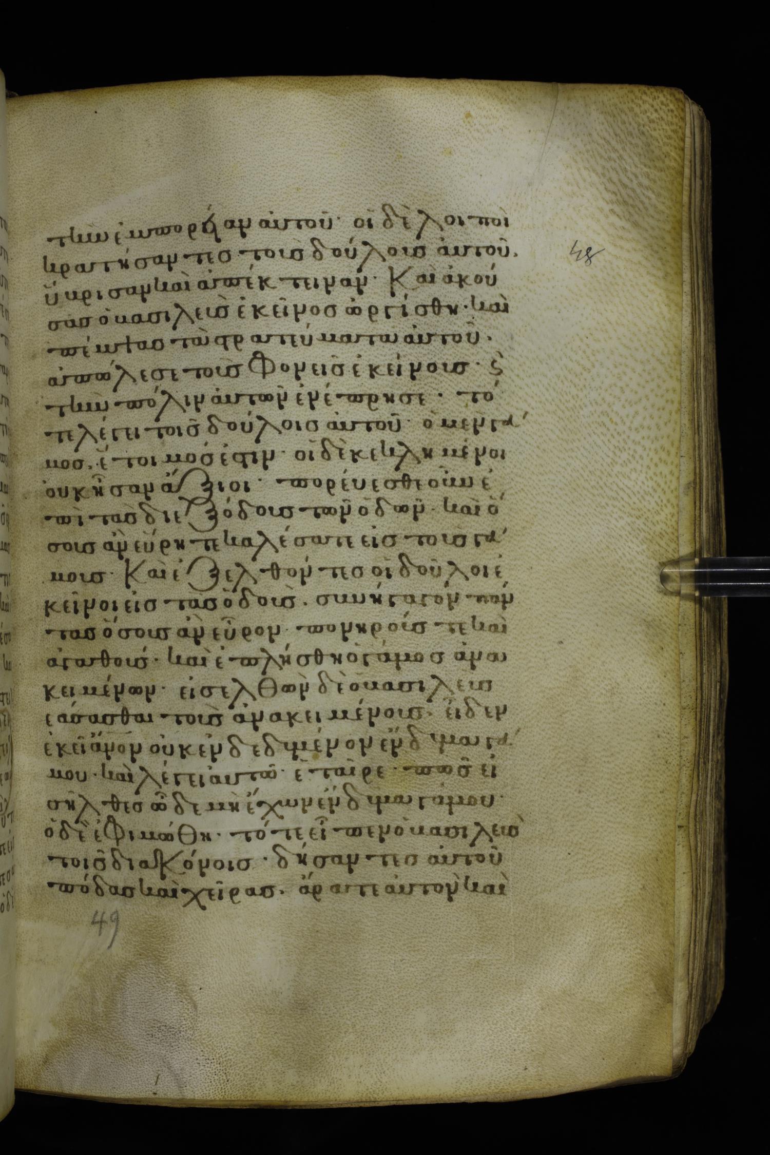 Twelfth century minuscule of the Gospels on parchment; 230 leaves, 1 column, 24-26 lines per column. Images were taken at the National Library of Greece in Athens.