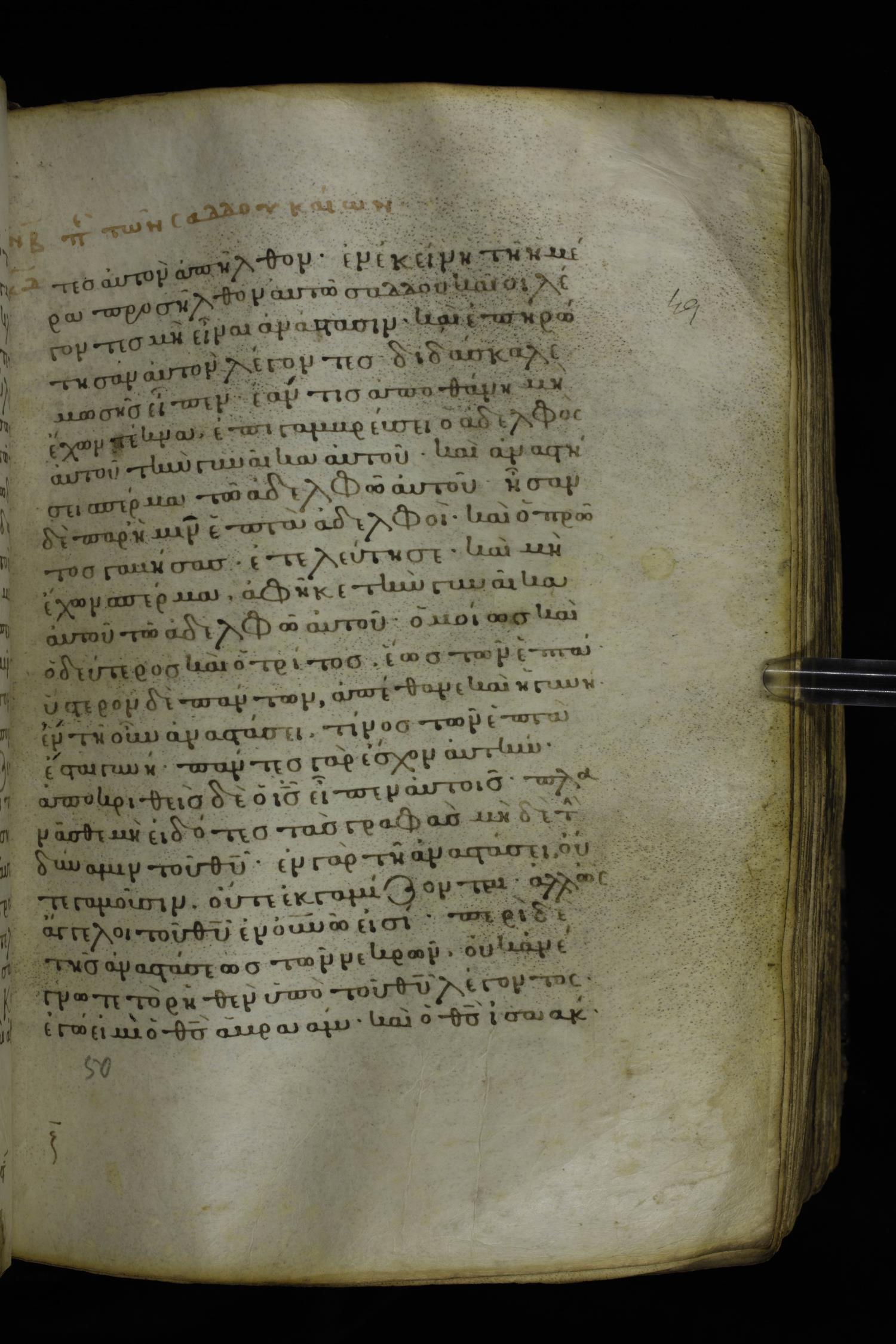 Twelfth century minuscule of the Gospels on parchment; 230 leaves, 1 column, 24-26 lines per column. Images were taken at the National Library of Greece in Athens.