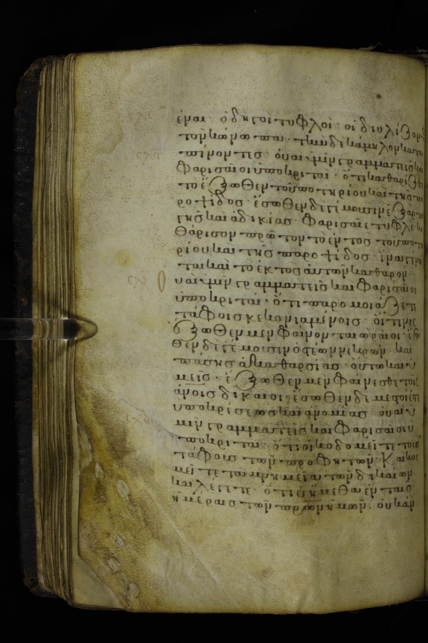 Twelfth century minuscule of the Gospels on parchment; 230 leaves, 1 column, 24-26 lines per column. Images were taken at the National Library of Greece in Athens.