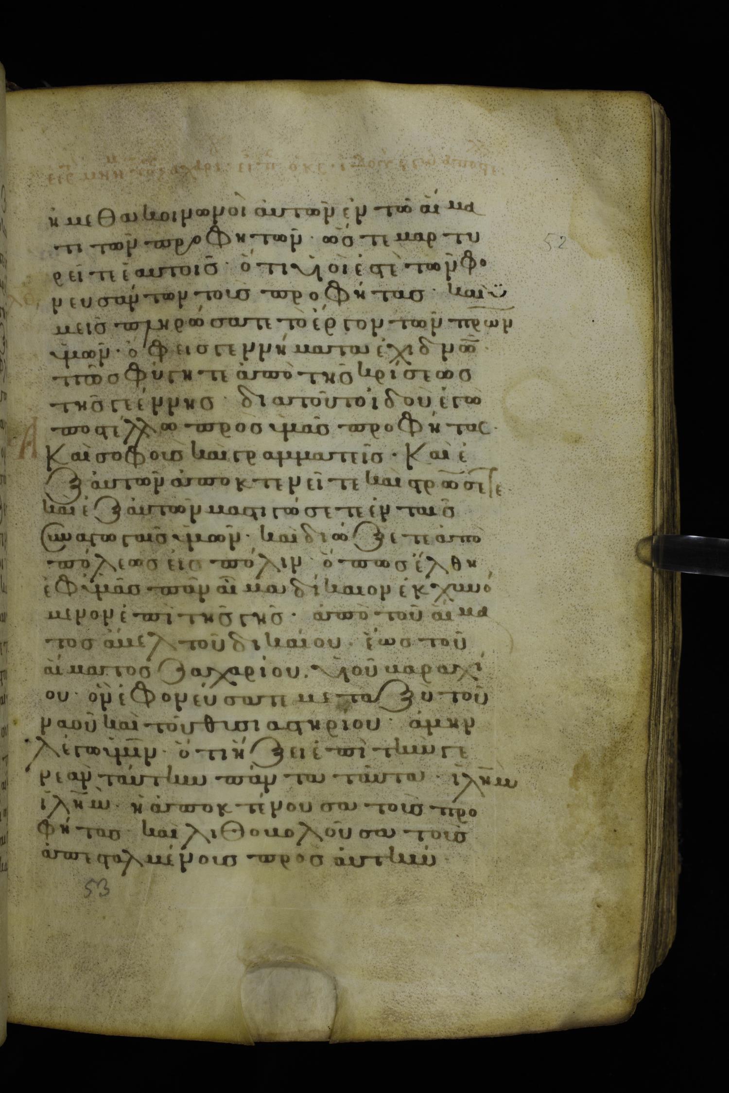 Twelfth century minuscule of the Gospels on parchment; 230 leaves, 1 column, 24-26 lines per column. Images were taken at the National Library of Greece in Athens.