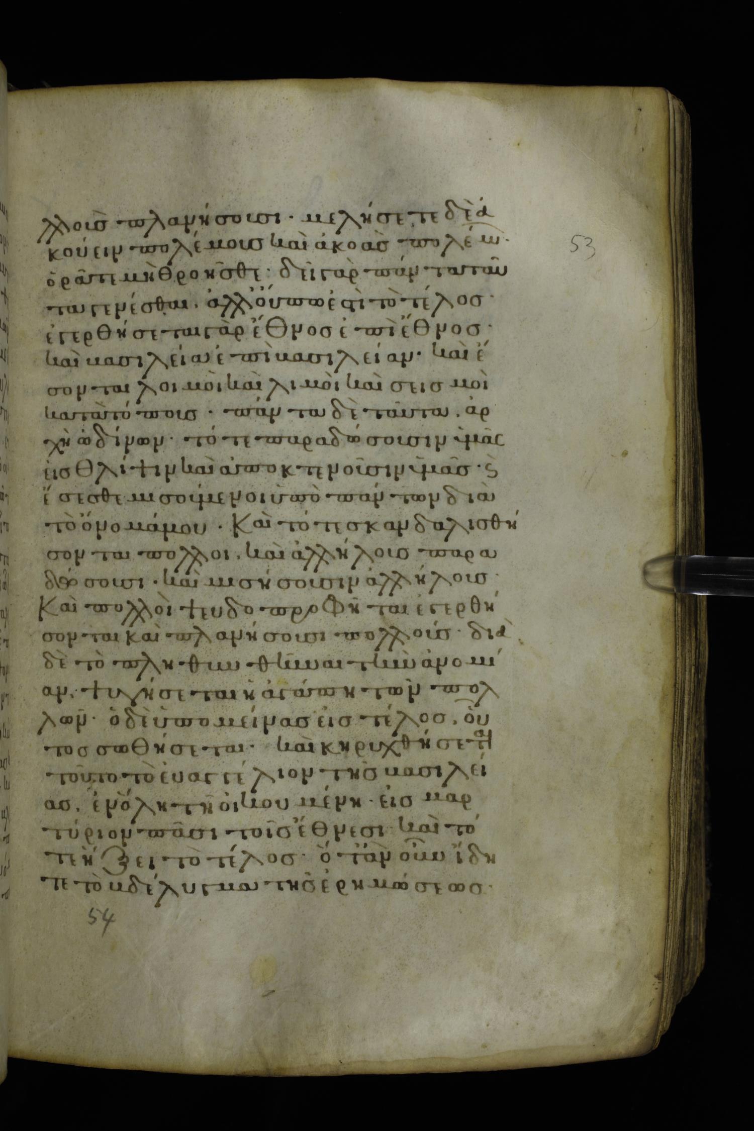 Twelfth century minuscule of the Gospels on parchment; 230 leaves, 1 column, 24-26 lines per column. Images were taken at the National Library of Greece in Athens.
