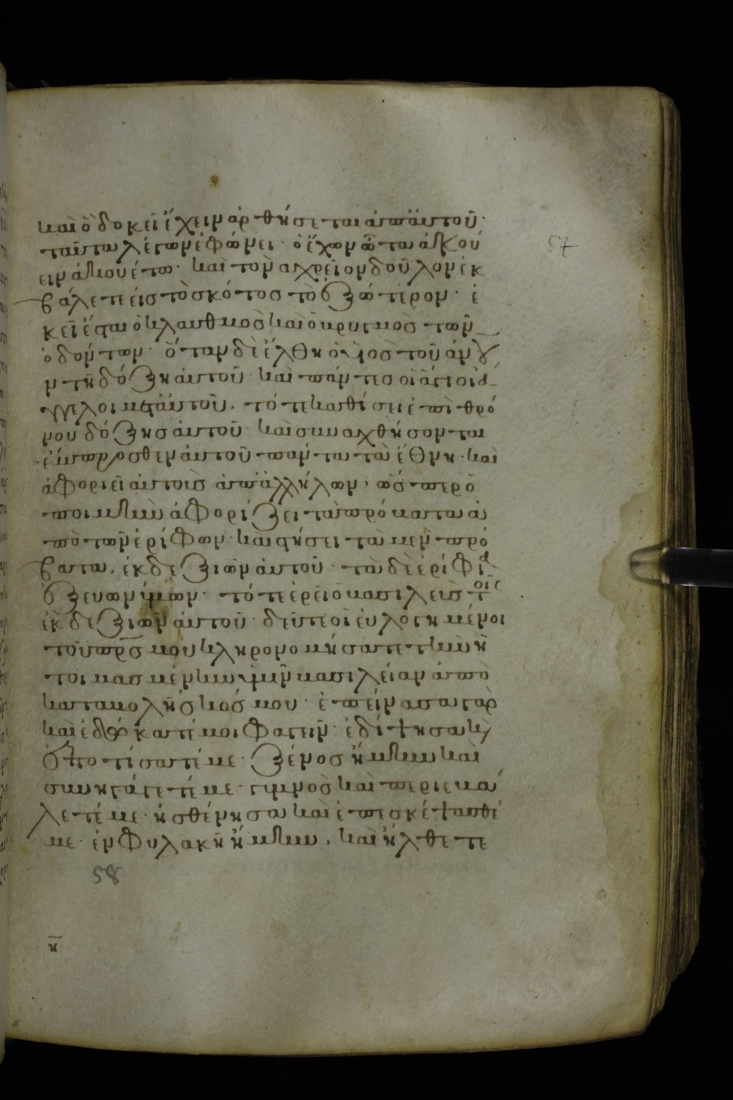 Twelfth century minuscule of the Gospels on parchment; 230 leaves, 1 column, 24-26 lines per column. Images were taken at the National Library of Greece in Athens.