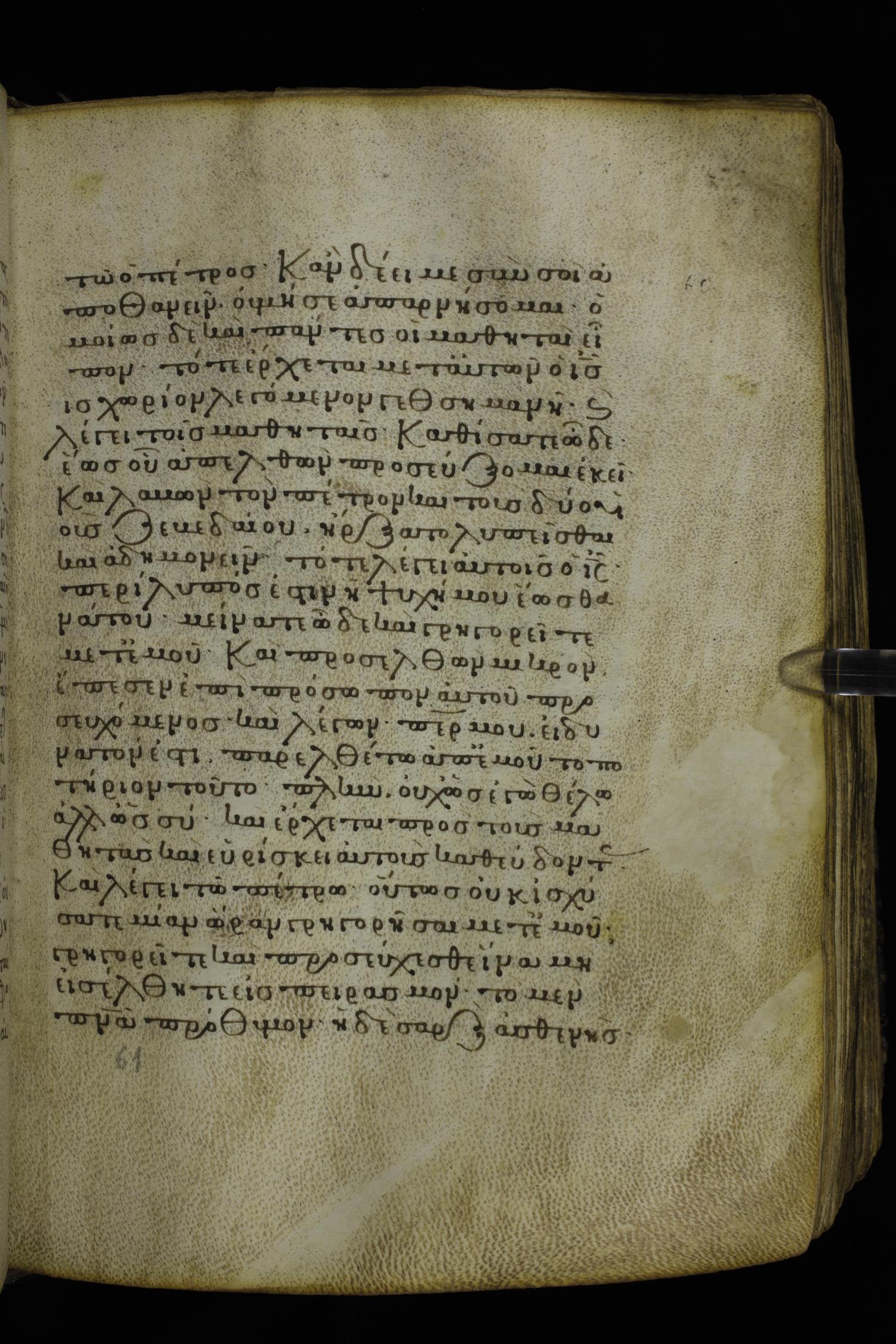 Twelfth century minuscule of the Gospels on parchment; 230 leaves, 1 column, 24-26 lines per column. Images were taken at the National Library of Greece in Athens.