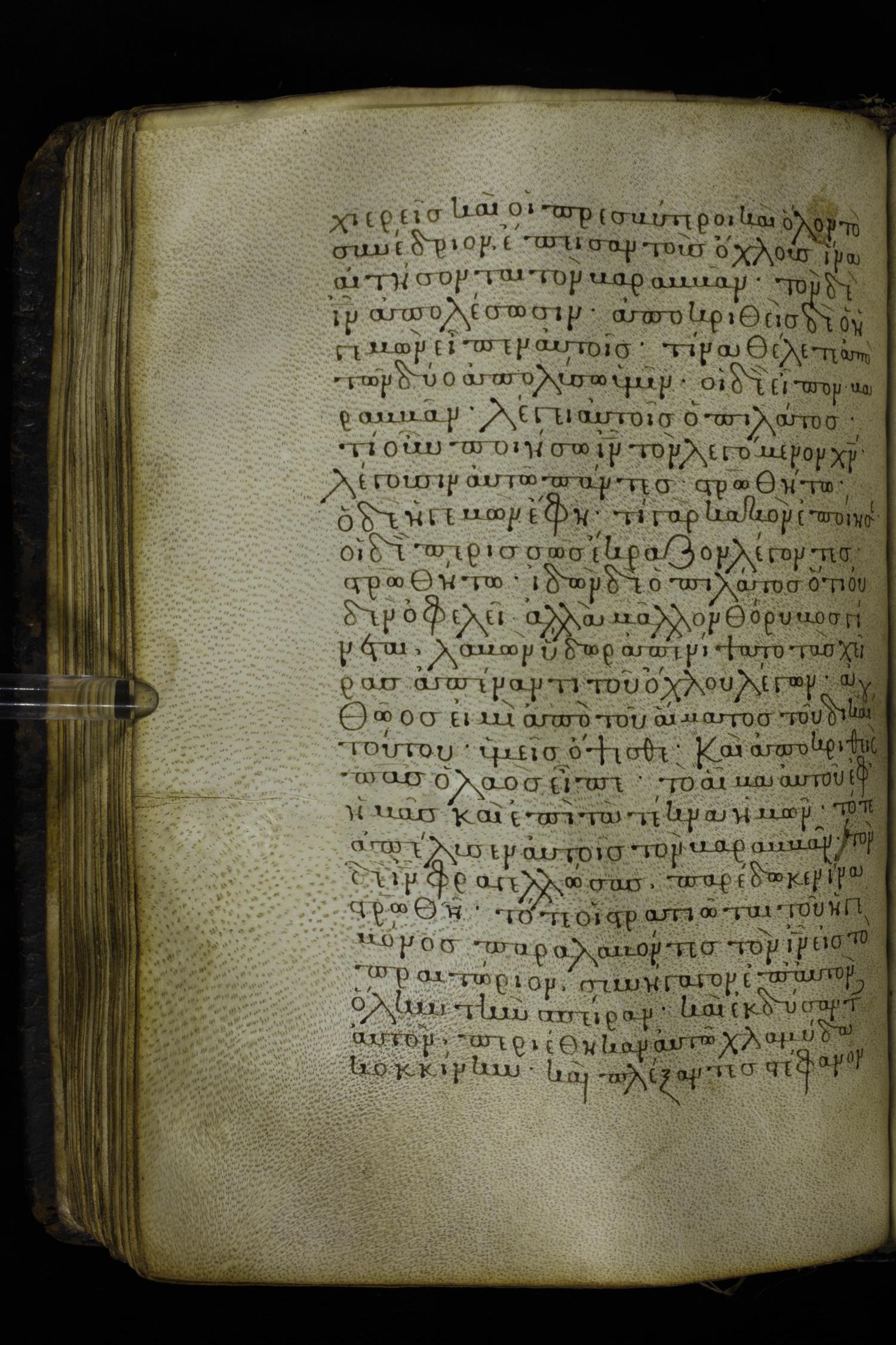 Twelfth century minuscule of the Gospels on parchment; 230 leaves, 1 column, 24-26 lines per column. Images were taken at the National Library of Greece in Athens.