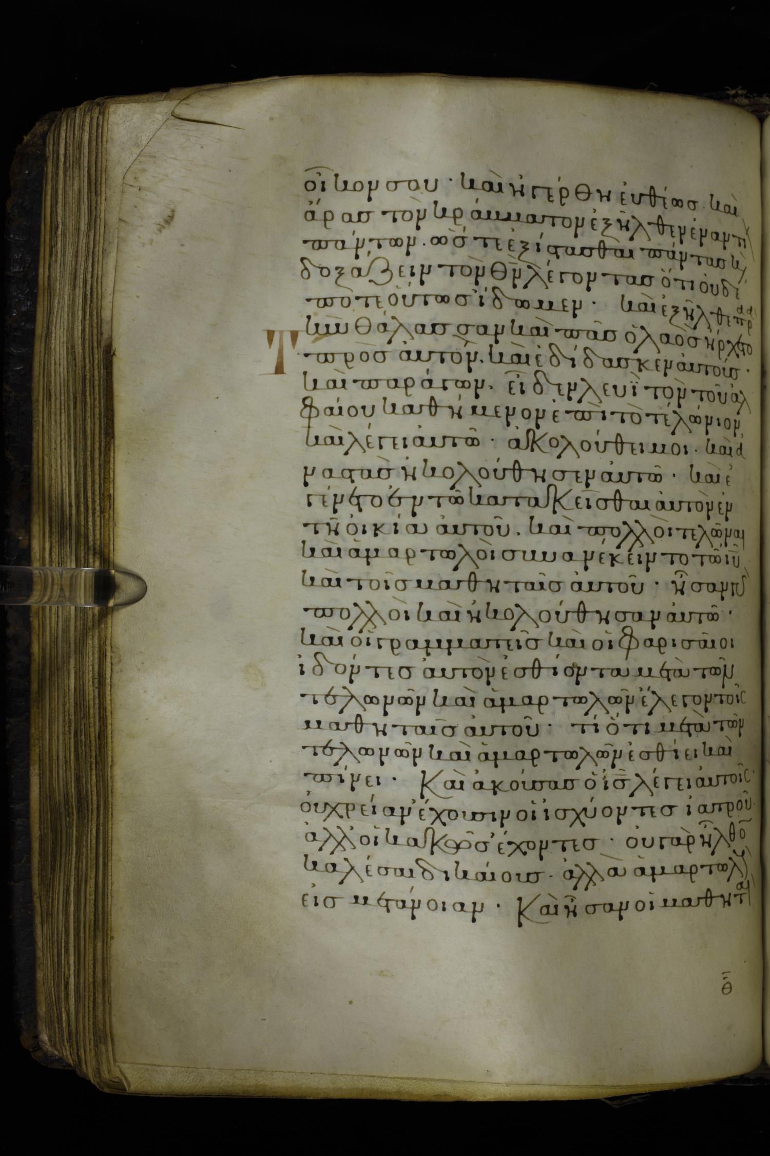 Twelfth century minuscule of the Gospels on parchment; 230 leaves, 1 column, 24-26 lines per column. Images were taken at the National Library of Greece in Athens.