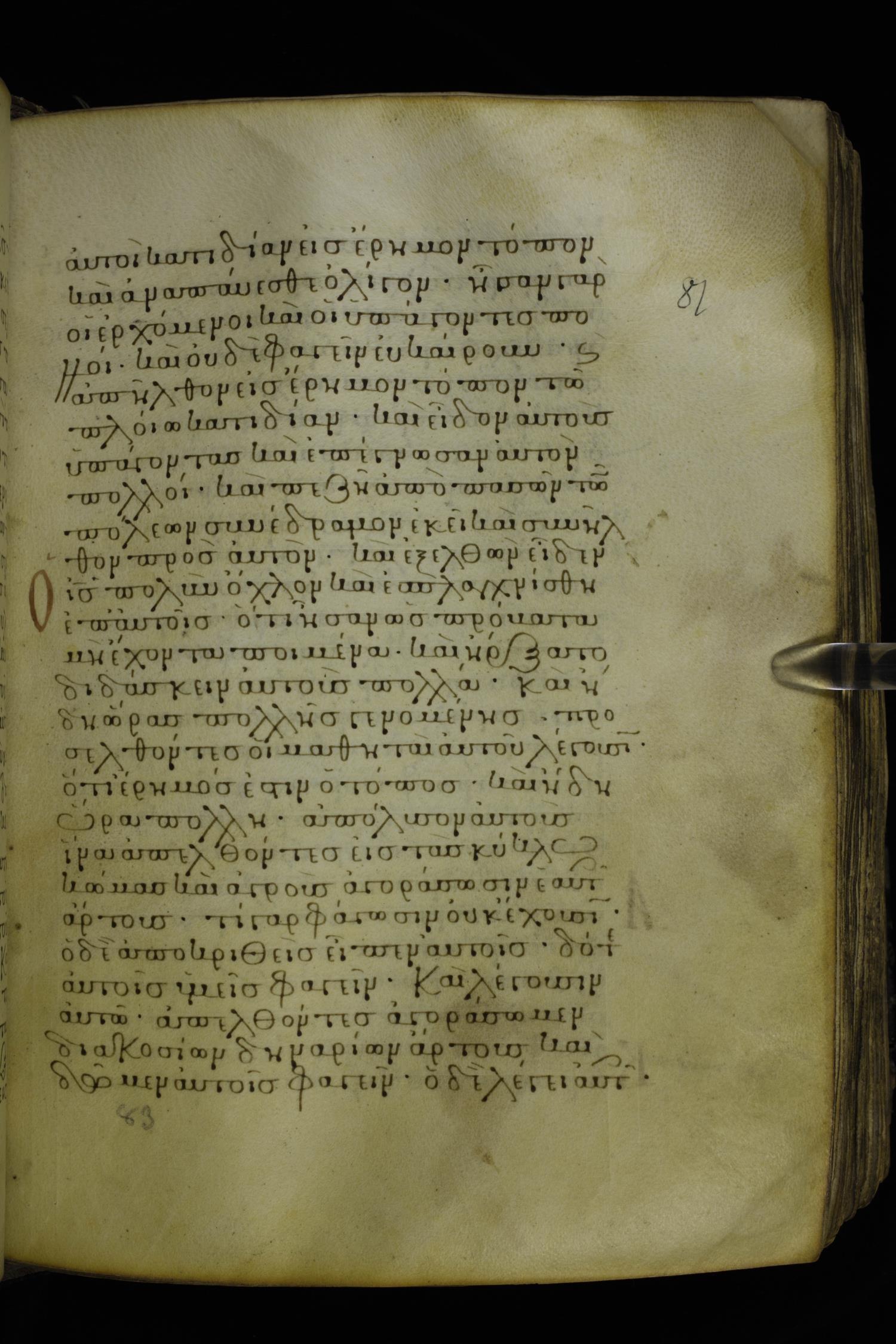 Twelfth century minuscule of the Gospels on parchment; 230 leaves, 1 column, 24-26 lines per column. Images were taken at the National Library of Greece in Athens.
