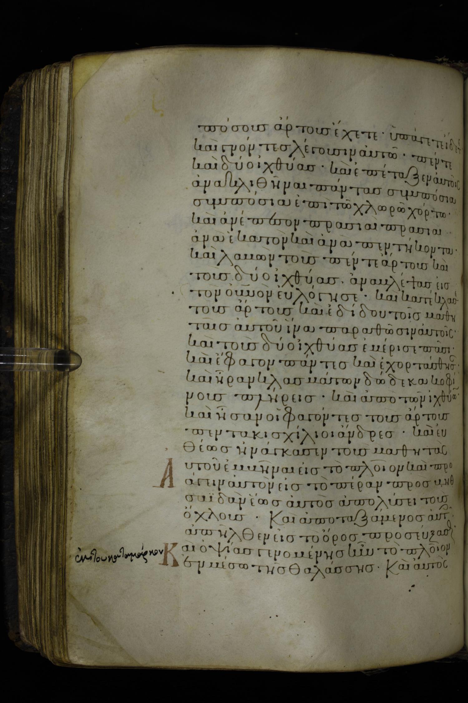 Twelfth century minuscule of the Gospels on parchment; 230 leaves, 1 column, 24-26 lines per column. Images were taken at the National Library of Greece in Athens.