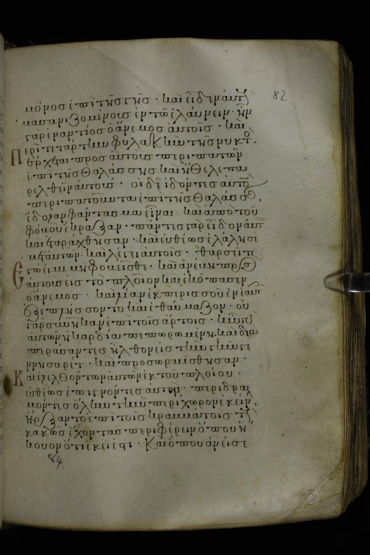 Twelfth century minuscule of the Gospels on parchment; 230 leaves, 1 column, 24-26 lines per column. Images were taken at the National Library of Greece in Athens.