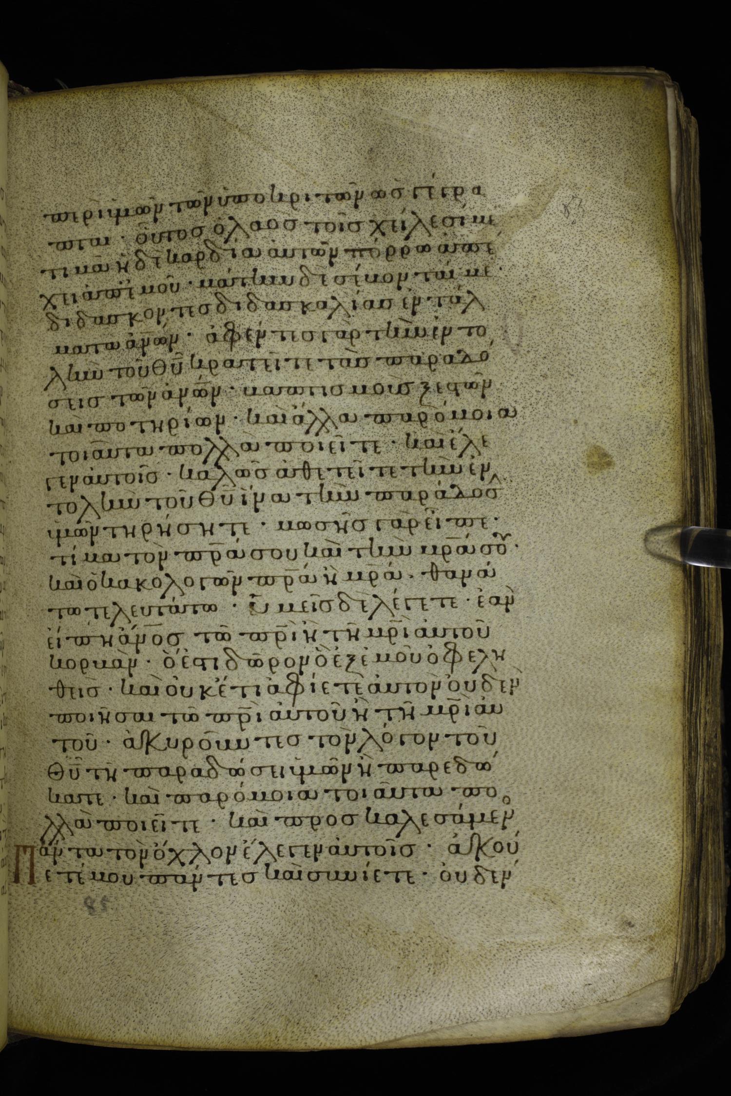 Twelfth century minuscule of the Gospels on parchment; 230 leaves, 1 column, 24-26 lines per column. Images were taken at the National Library of Greece in Athens.