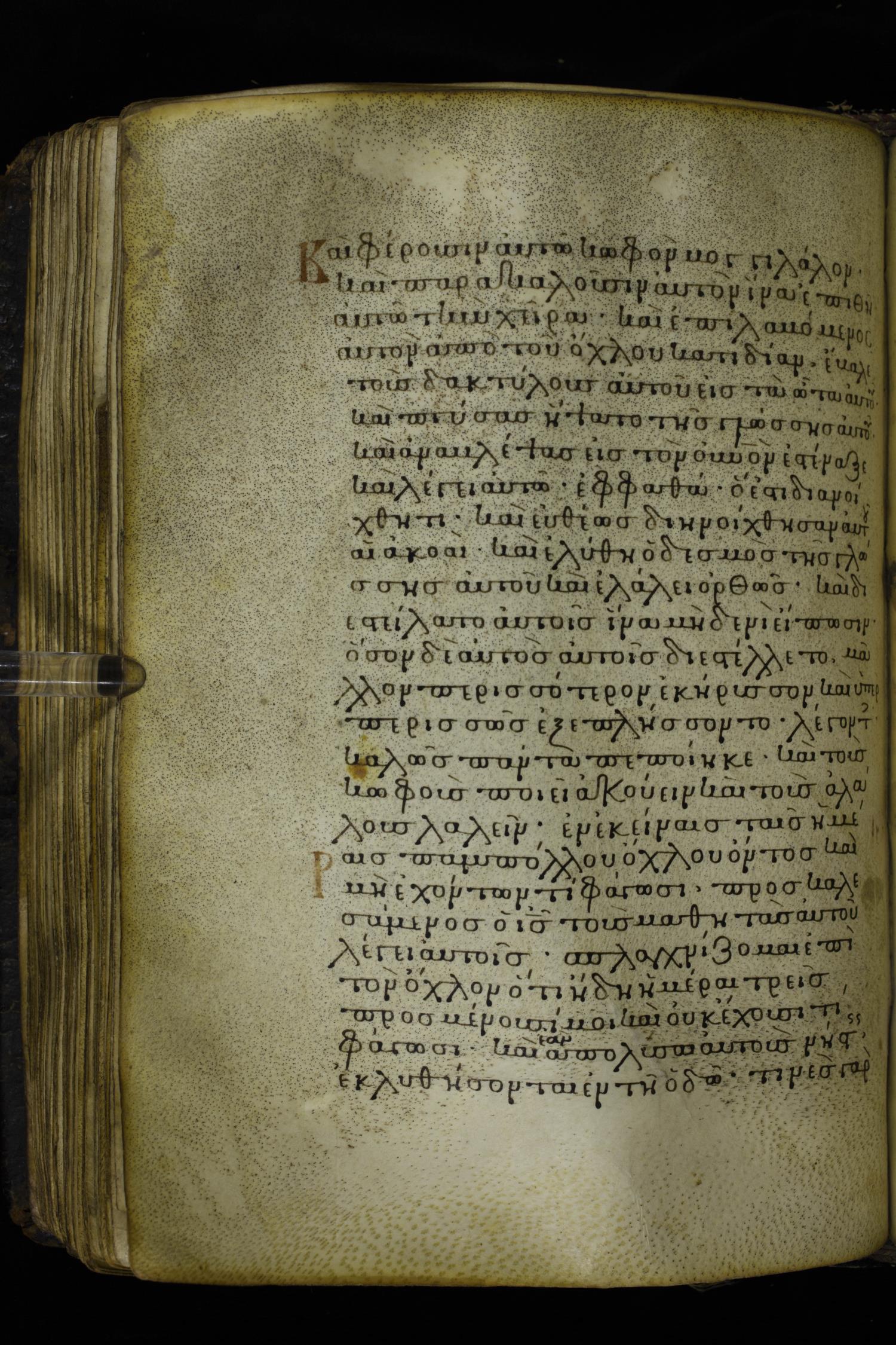 Twelfth century minuscule of the Gospels on parchment; 230 leaves, 1 column, 24-26 lines per column. Images were taken at the National Library of Greece in Athens.