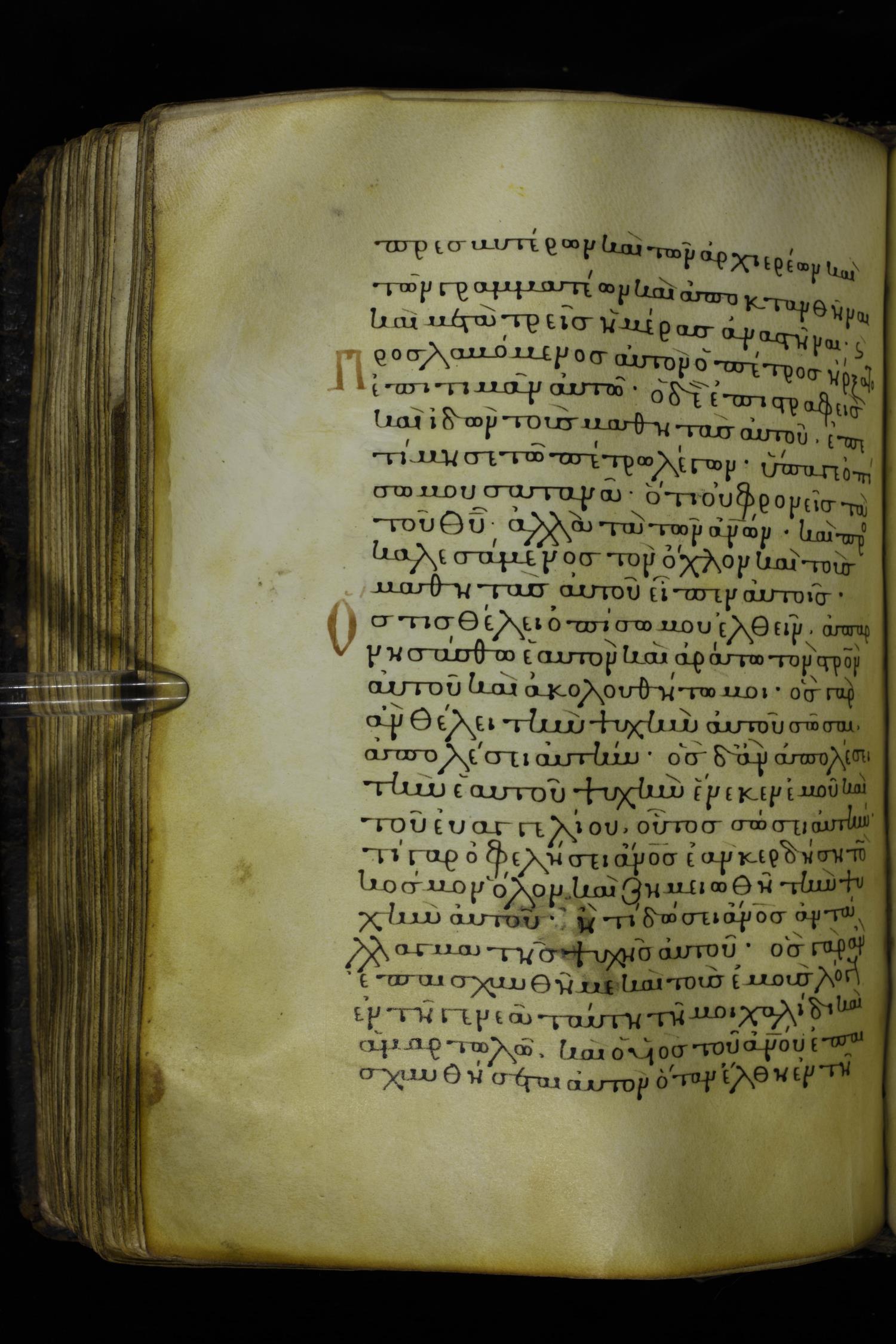 Twelfth century minuscule of the Gospels on parchment; 230 leaves, 1 column, 24-26 lines per column. Images were taken at the National Library of Greece in Athens.