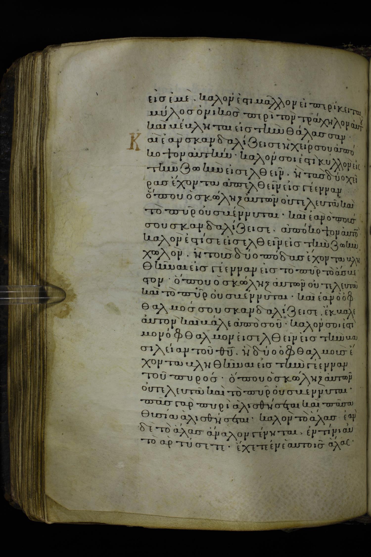 Twelfth century minuscule of the Gospels on parchment; 230 leaves, 1 column, 24-26 lines per column. Images were taken at the National Library of Greece in Athens.