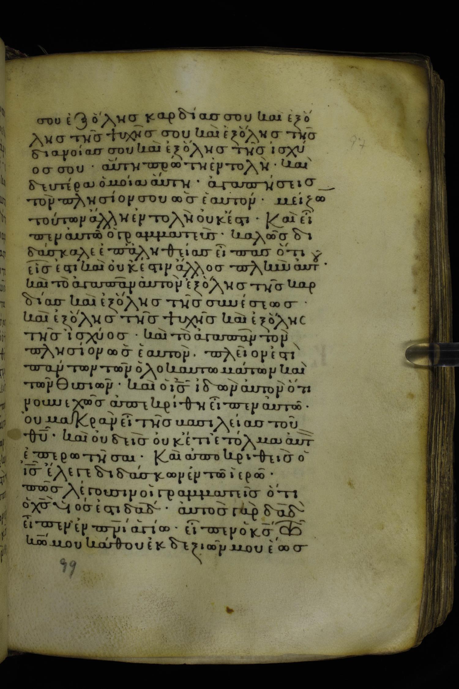 Twelfth century minuscule of the Gospels on parchment; 230 leaves, 1 column, 24-26 lines per column. Images were taken at the National Library of Greece in Athens.