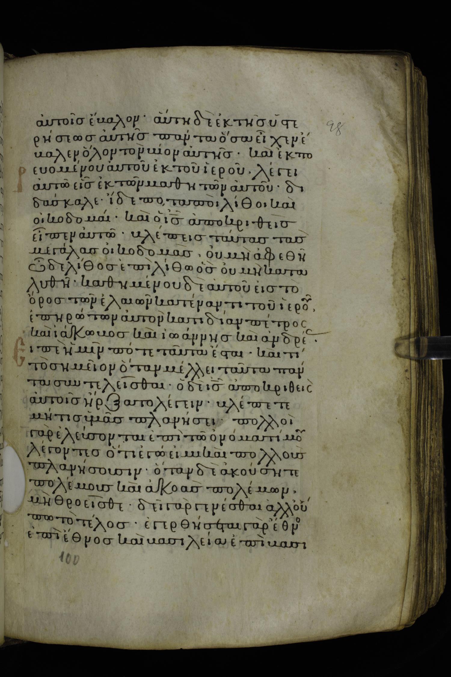 Twelfth century minuscule of the Gospels on parchment; 230 leaves, 1 column, 24-26 lines per column. Images were taken at the National Library of Greece in Athens.