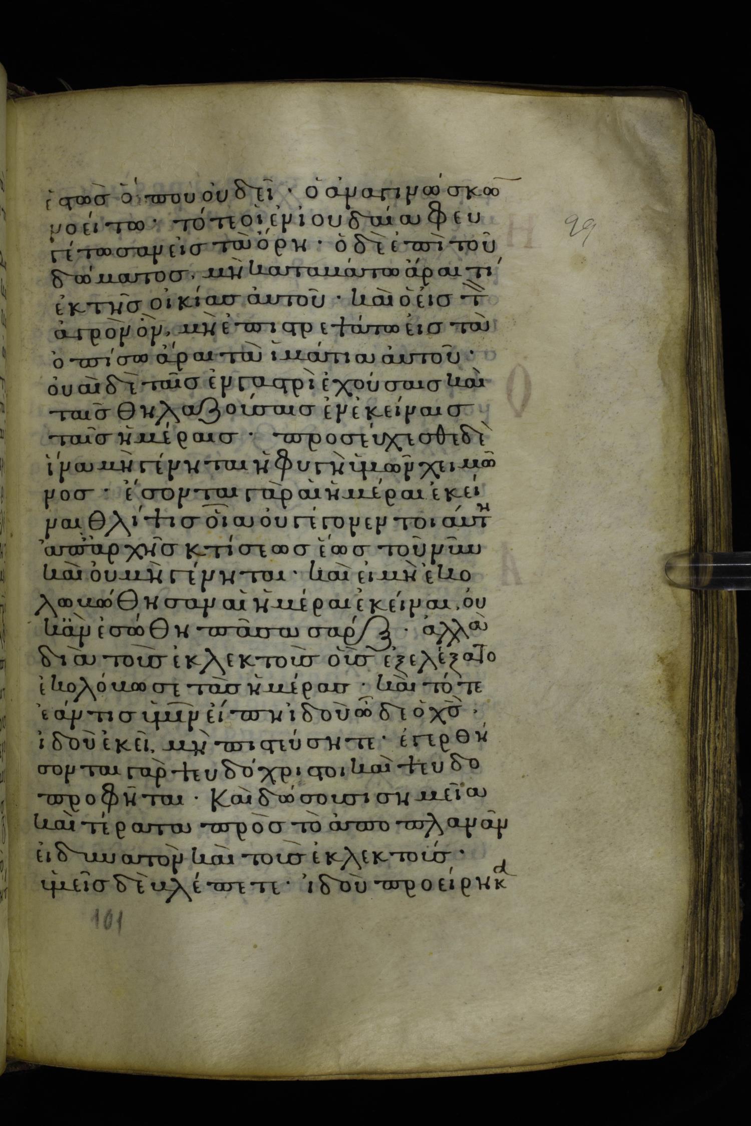 Twelfth century minuscule of the Gospels on parchment; 230 leaves, 1 column, 24-26 lines per column. Images were taken at the National Library of Greece in Athens.