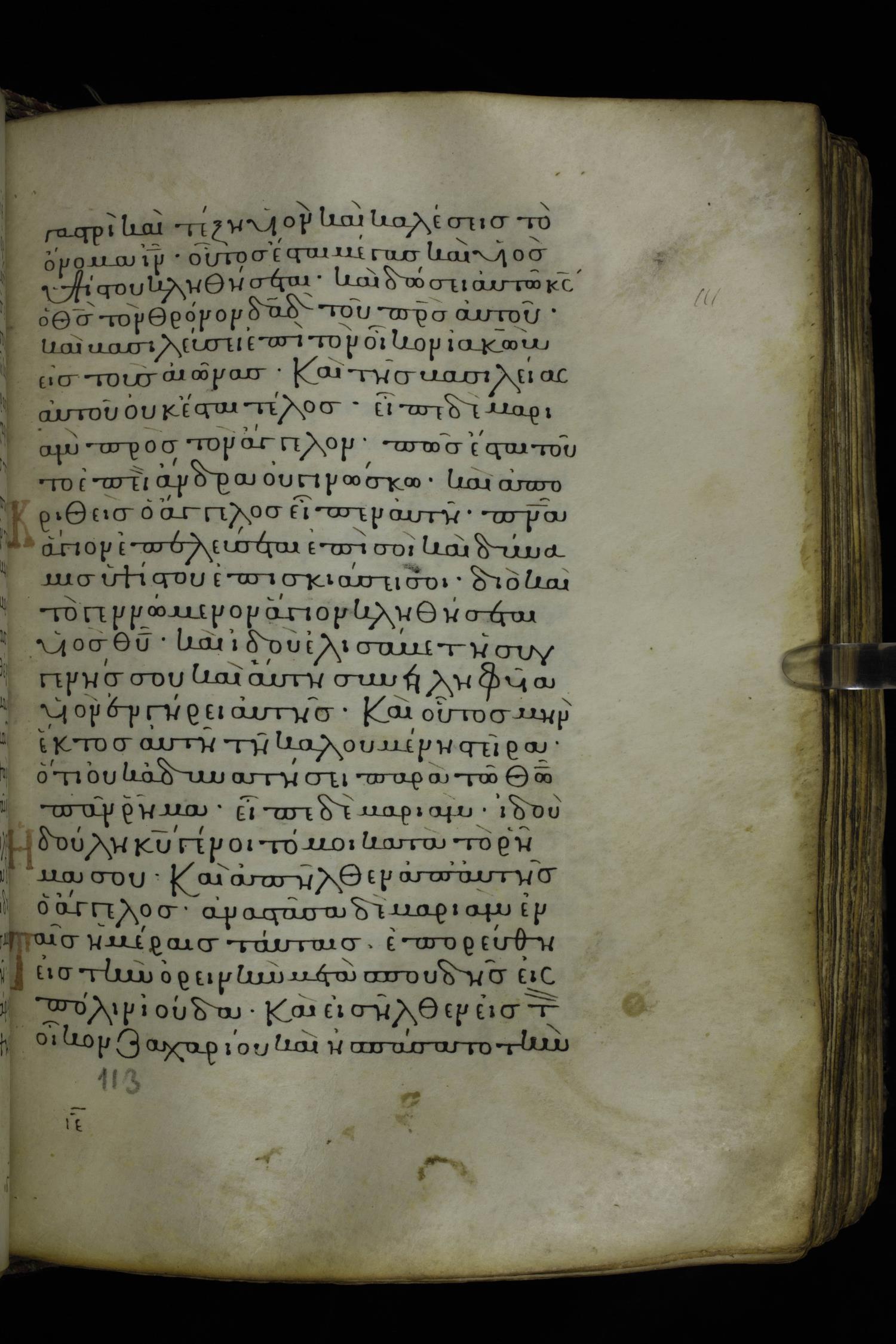 Twelfth century minuscule of the Gospels on parchment; 230 leaves, 1 column, 24-26 lines per column. Images were taken at the National Library of Greece in Athens.