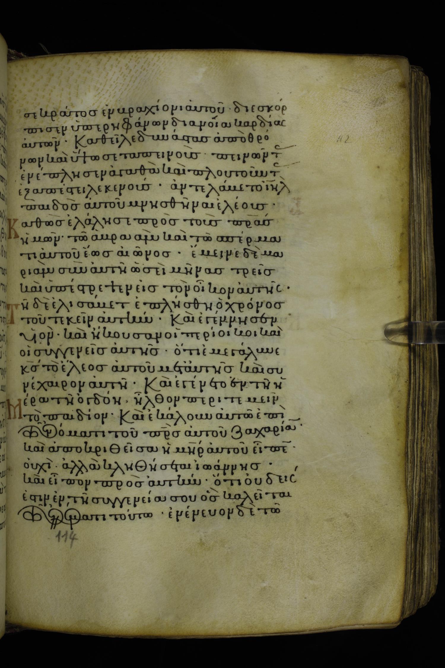 Twelfth century minuscule of the Gospels on parchment; 230 leaves, 1 column, 24-26 lines per column. Images were taken at the National Library of Greece in Athens.