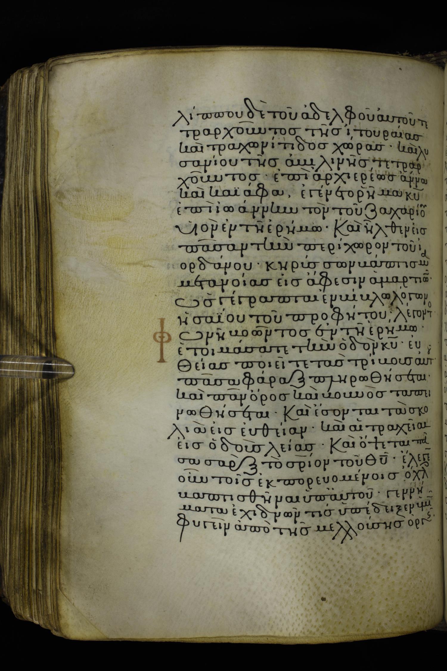 Twelfth century minuscule of the Gospels on parchment; 230 leaves, 1 column, 24-26 lines per column. Images were taken at the National Library of Greece in Athens.