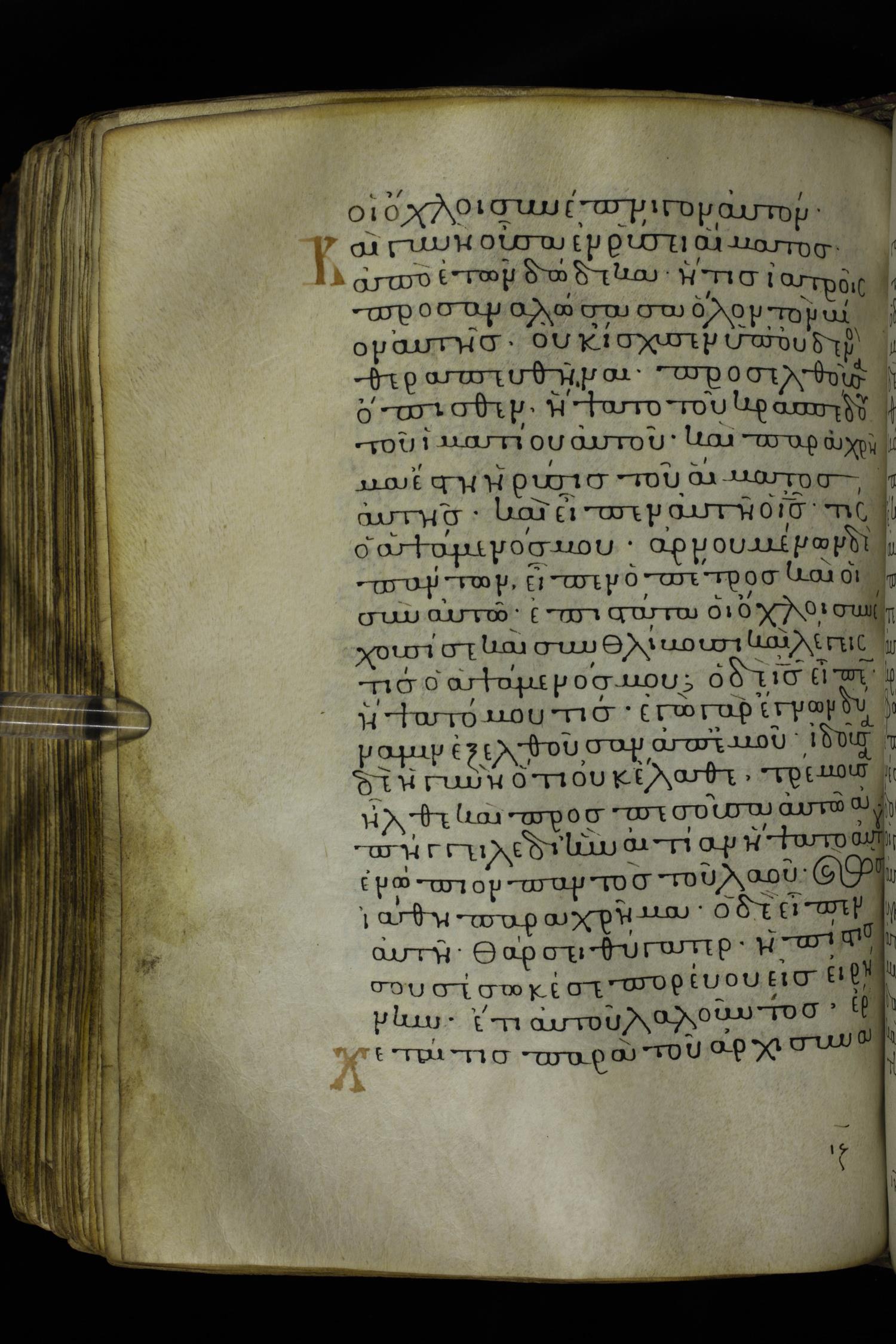 Twelfth century minuscule of the Gospels on parchment; 230 leaves, 1 column, 24-26 lines per column. Images were taken at the National Library of Greece in Athens.