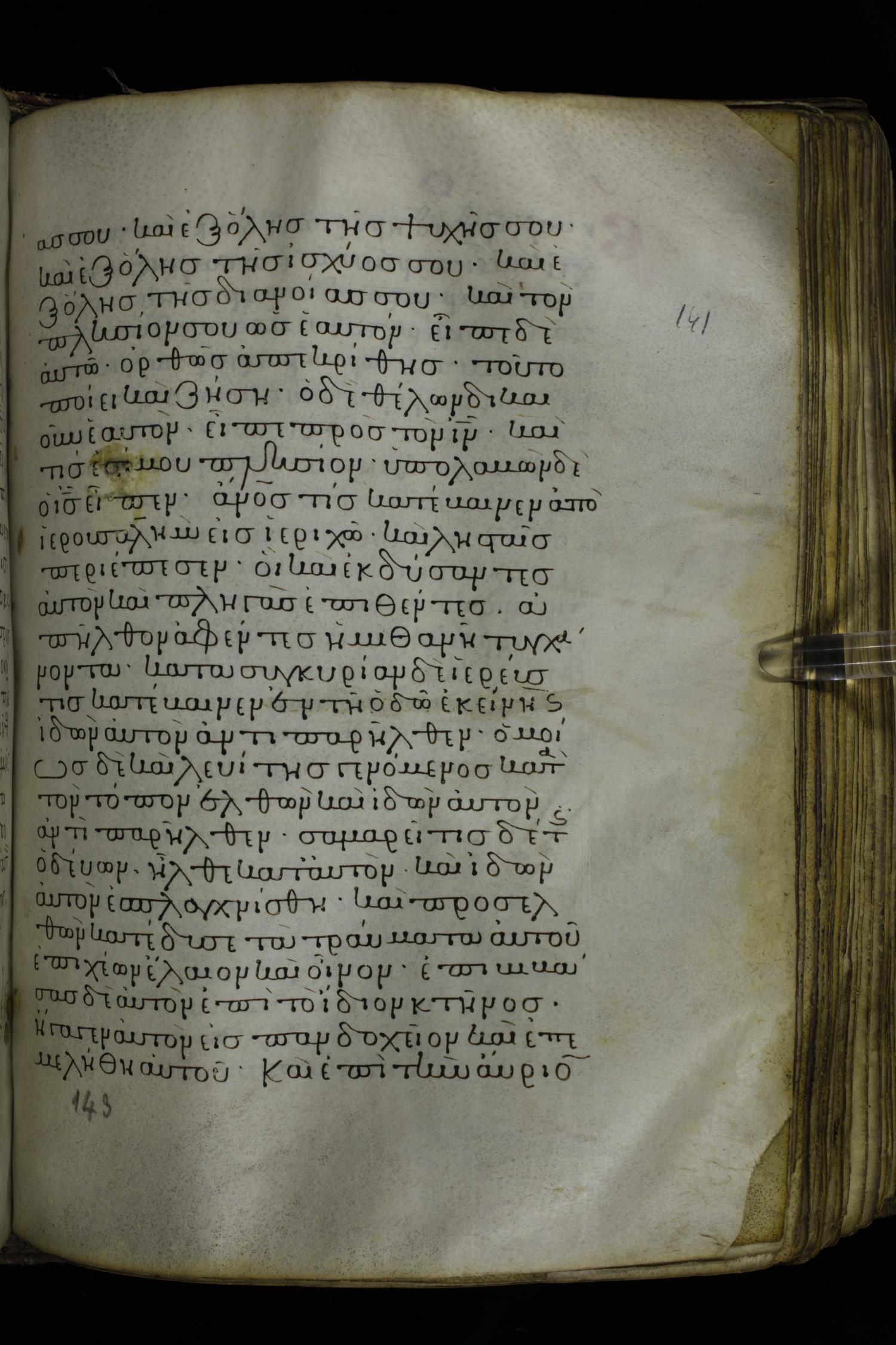 Twelfth century minuscule of the Gospels on parchment; 230 leaves, 1 column, 24-26 lines per column. Images were taken at the National Library of Greece in Athens.