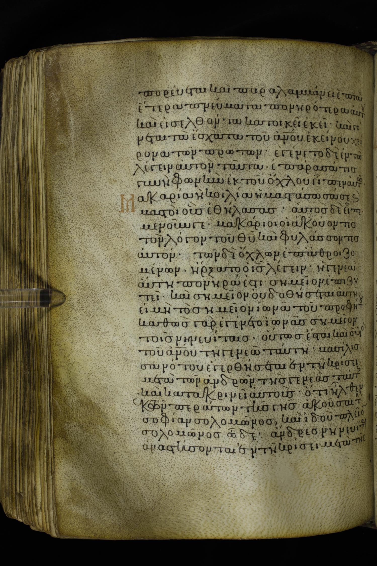 Twelfth century minuscule of the Gospels on parchment; 230 leaves, 1 column, 24-26 lines per column. Images were taken at the National Library of Greece in Athens.