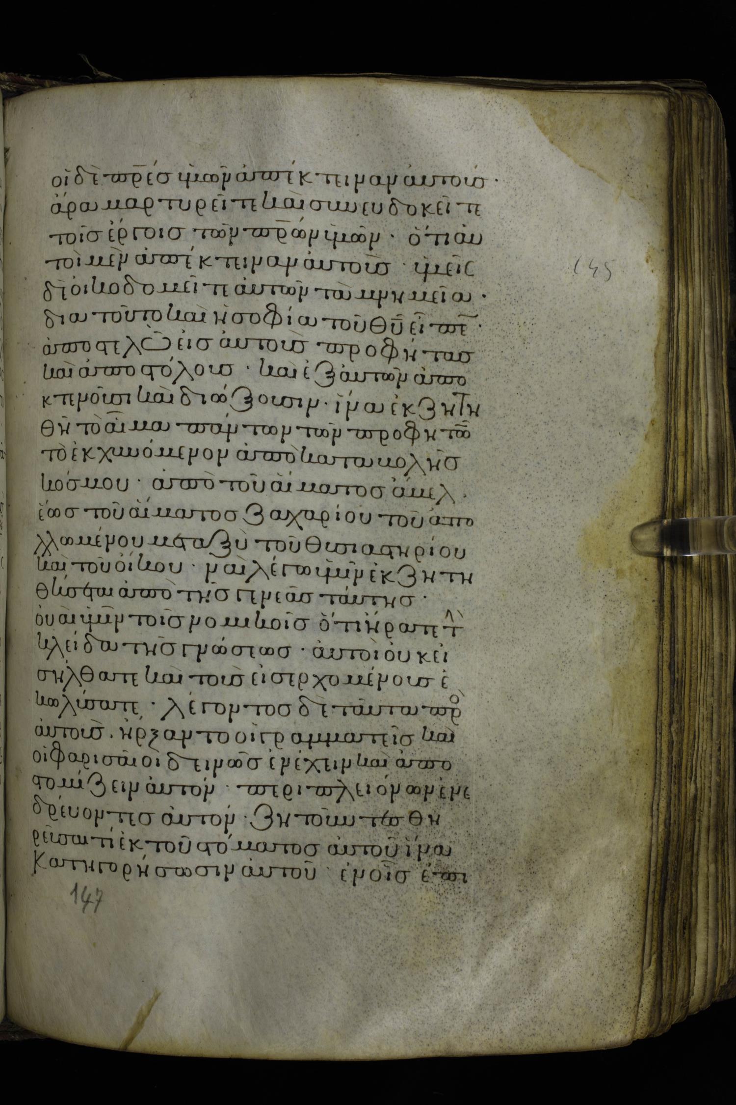 Twelfth century minuscule of the Gospels on parchment; 230 leaves, 1 column, 24-26 lines per column. Images were taken at the National Library of Greece in Athens.