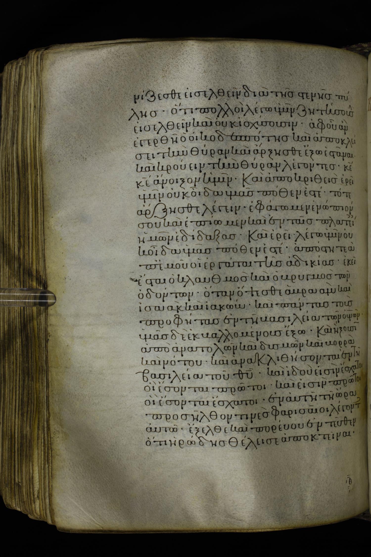 Twelfth century minuscule of the Gospels on parchment; 230 leaves, 1 column, 24-26 lines per column. Images were taken at the National Library of Greece in Athens.