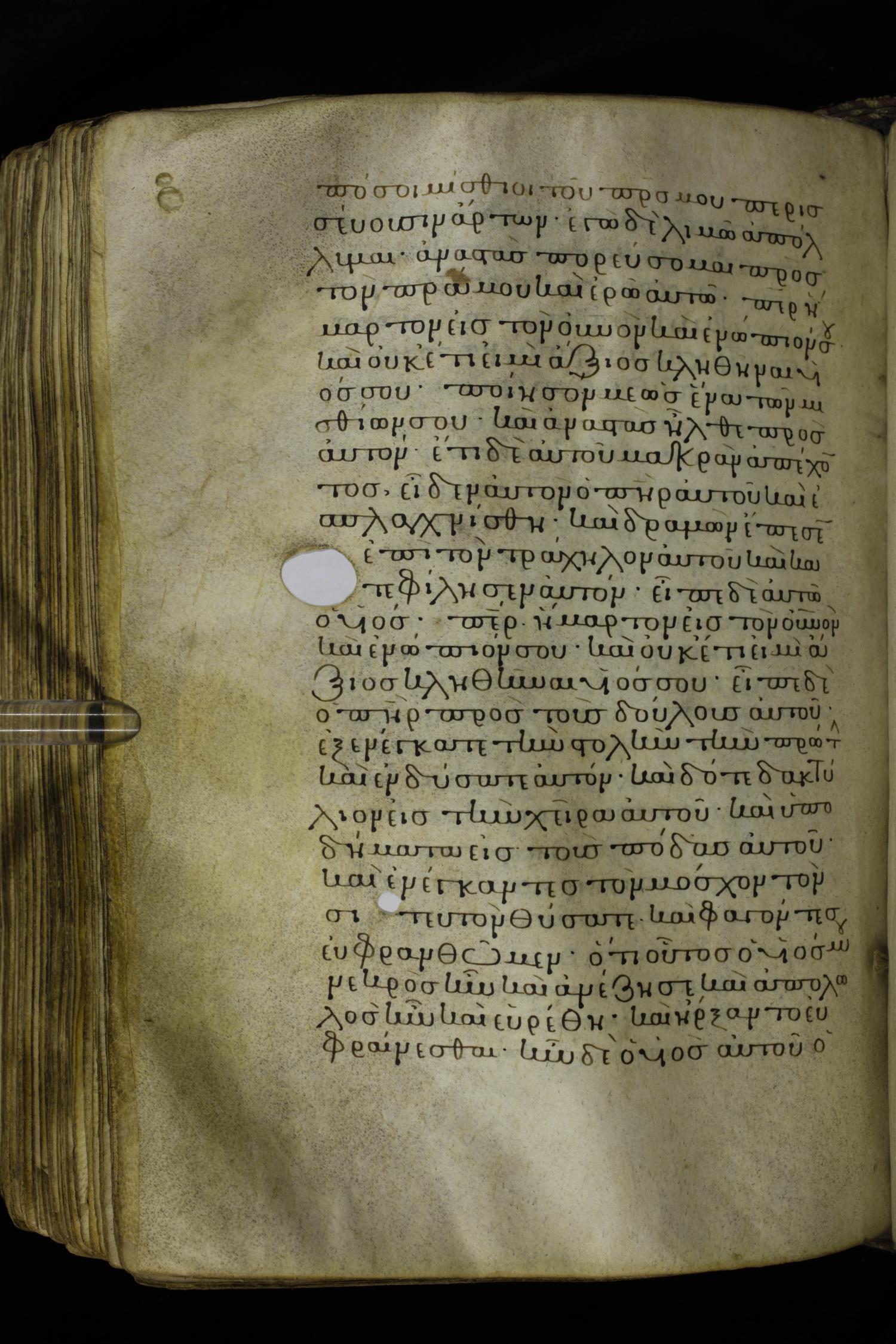 Twelfth century minuscule of the Gospels on parchment; 230 leaves, 1 column, 24-26 lines per column. Images were taken at the National Library of Greece in Athens.