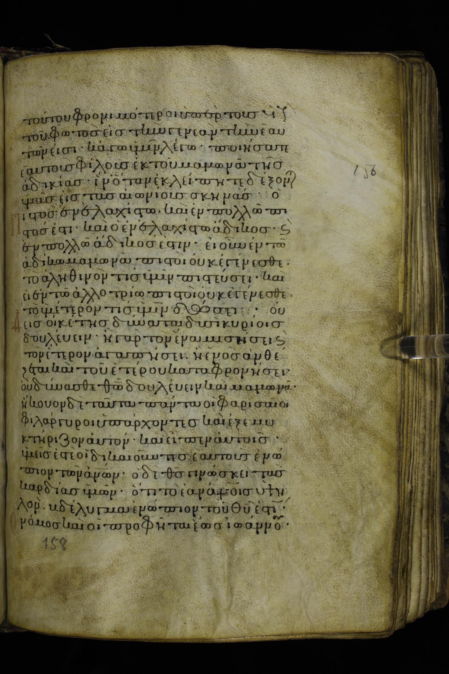 Twelfth century minuscule of the Gospels on parchment; 230 leaves, 1 column, 24-26 lines per column. Images were taken at the National Library of Greece in Athens.