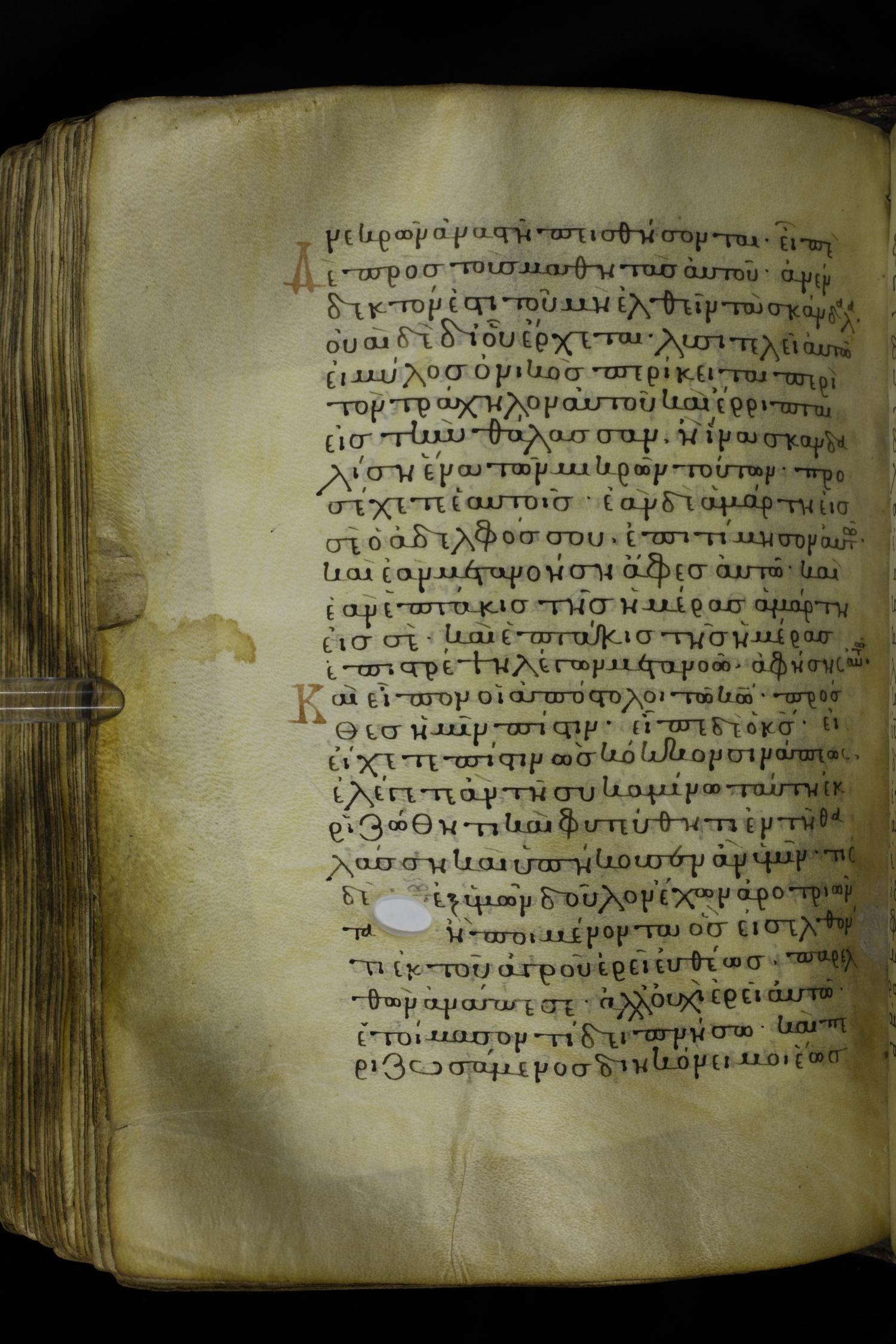 Twelfth century minuscule of the Gospels on parchment; 230 leaves, 1 column, 24-26 lines per column. Images were taken at the National Library of Greece in Athens.