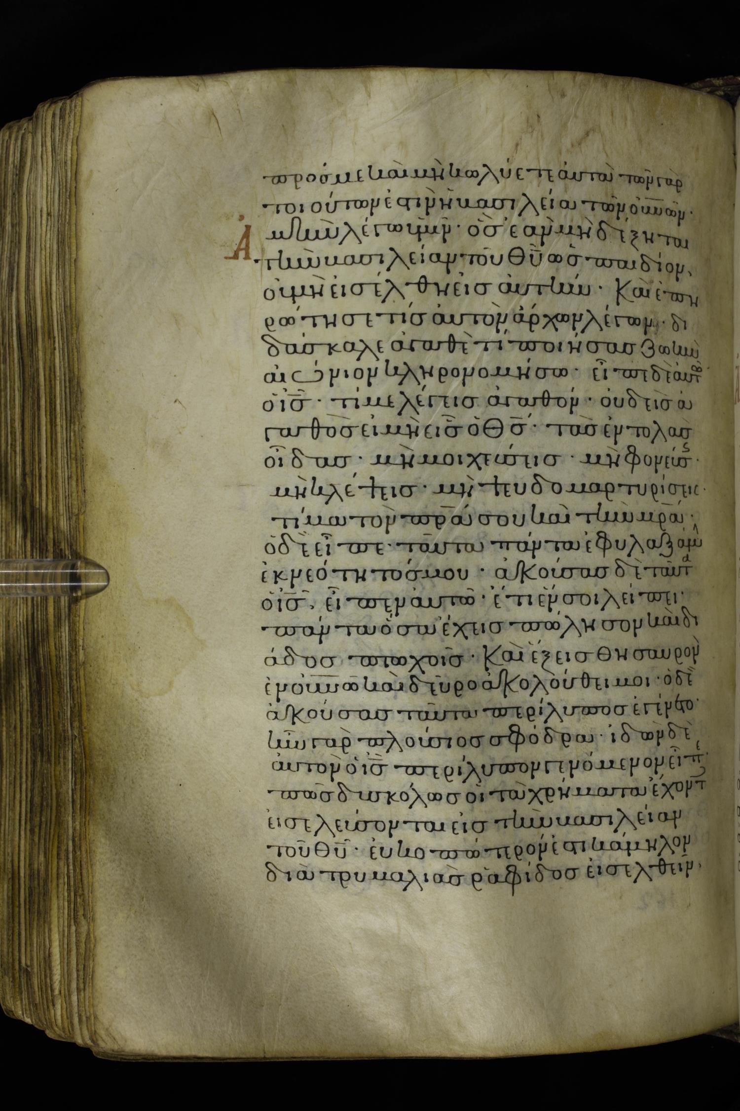 Twelfth century minuscule of the Gospels on parchment; 230 leaves, 1 column, 24-26 lines per column. Images were taken at the National Library of Greece in Athens.