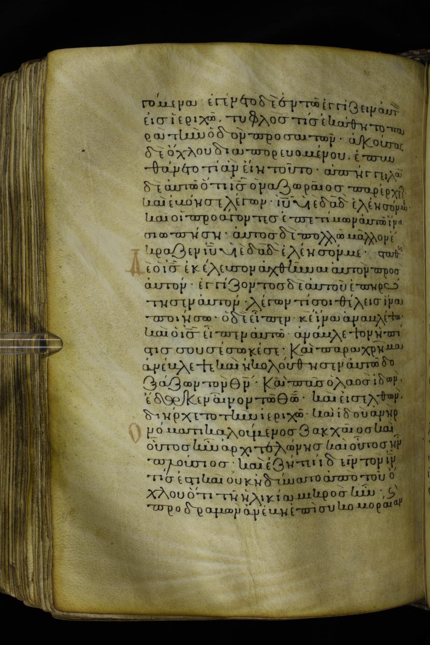 Twelfth century minuscule of the Gospels on parchment; 230 leaves, 1 column, 24-26 lines per column. Images were taken at the National Library of Greece in Athens.