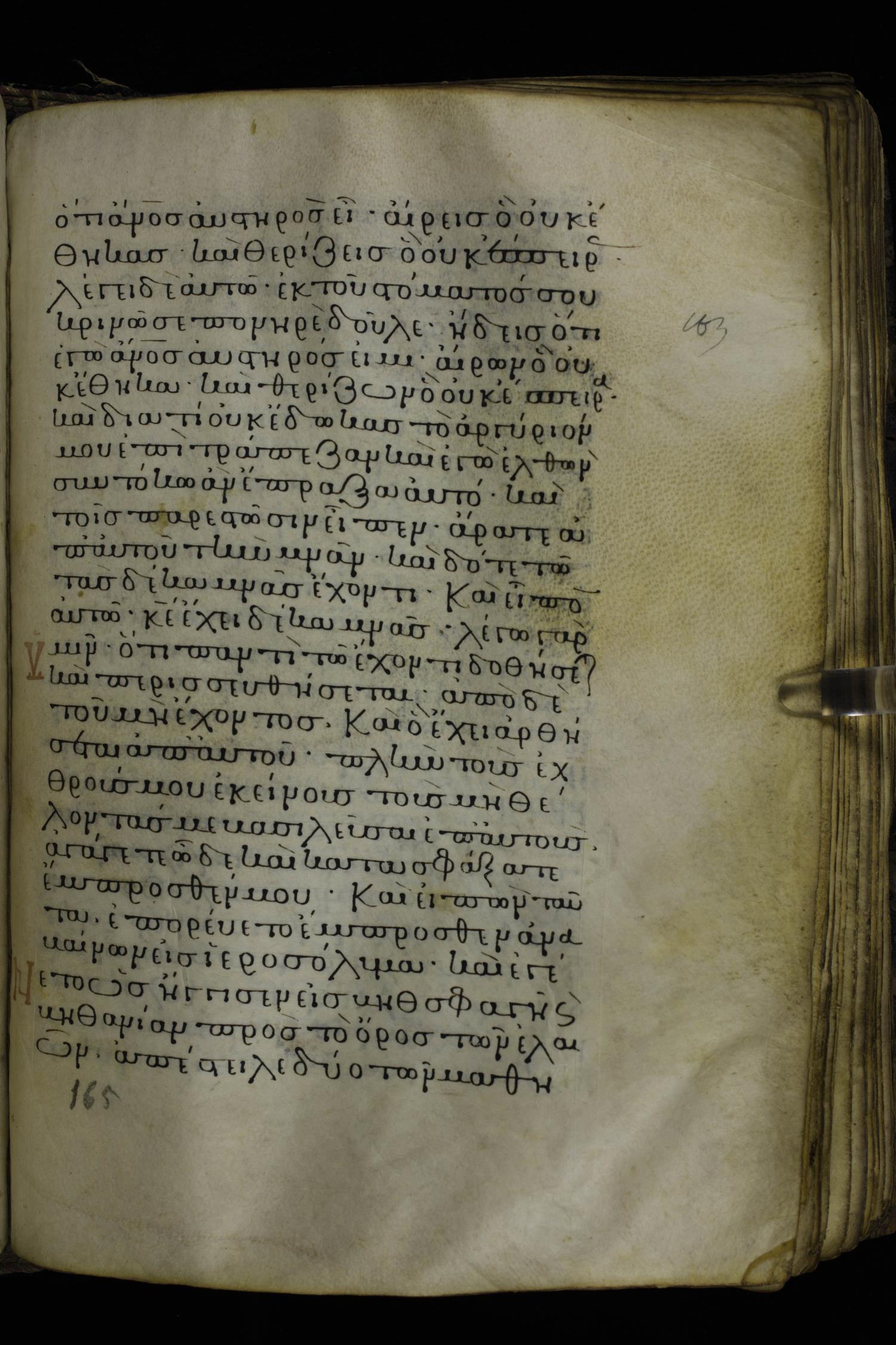 Twelfth century minuscule of the Gospels on parchment; 230 leaves, 1 column, 24-26 lines per column. Images were taken at the National Library of Greece in Athens.