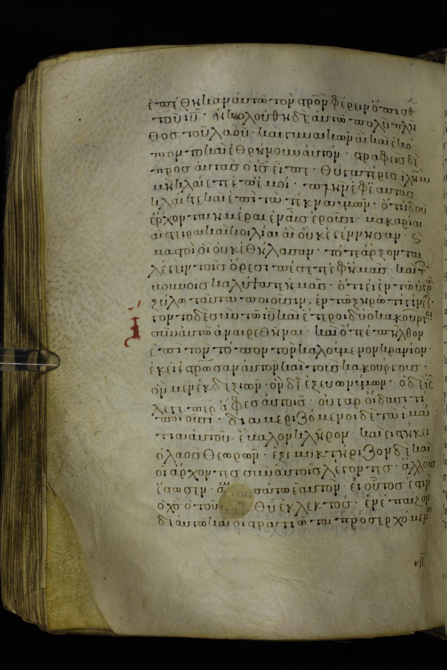 Twelfth century minuscule of the Gospels on parchment; 230 leaves, 1 column, 24-26 lines per column. Images were taken at the National Library of Greece in Athens.