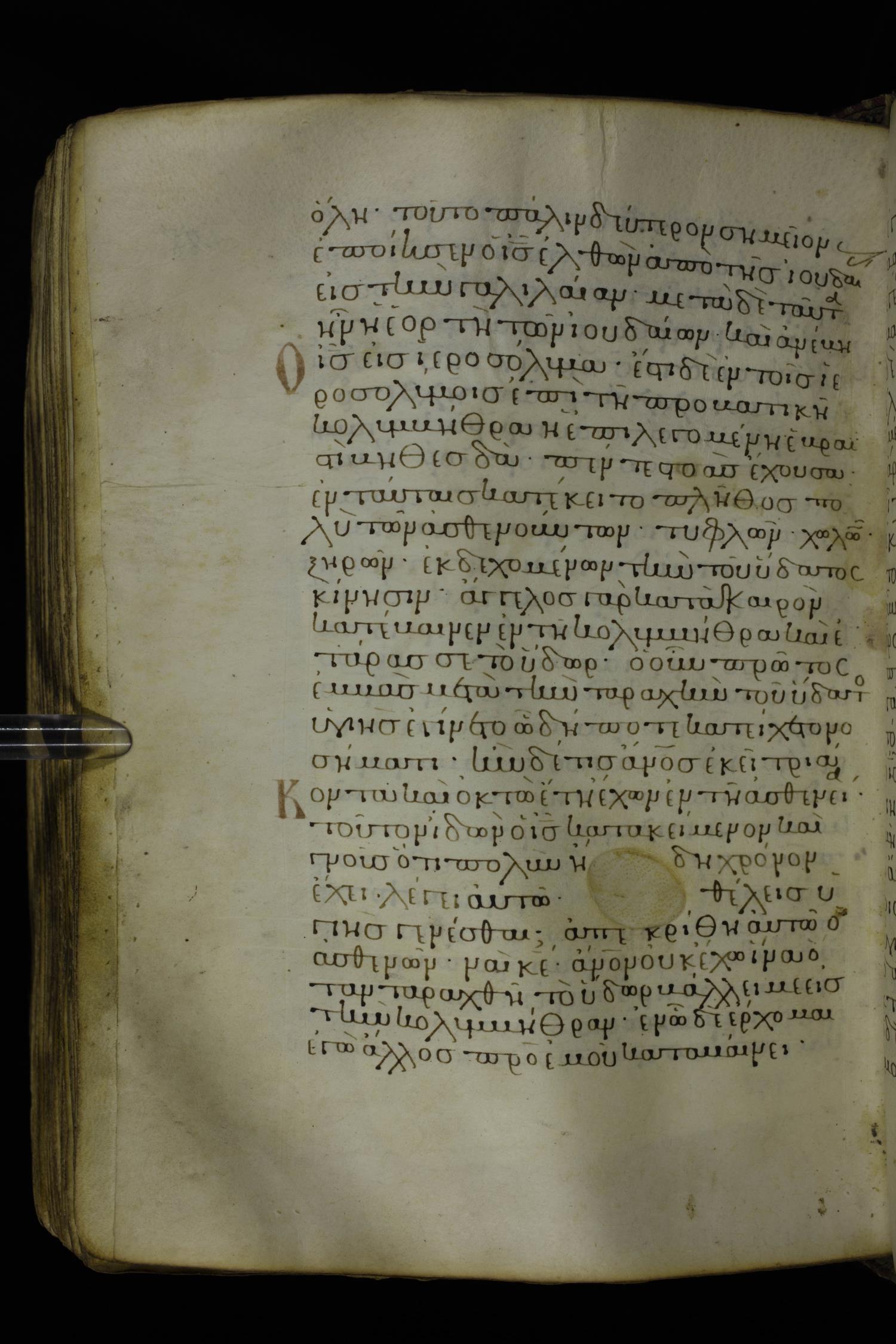Twelfth century minuscule of the Gospels on parchment; 230 leaves, 1 column, 24-26 lines per column. Images were taken at the National Library of Greece in Athens.