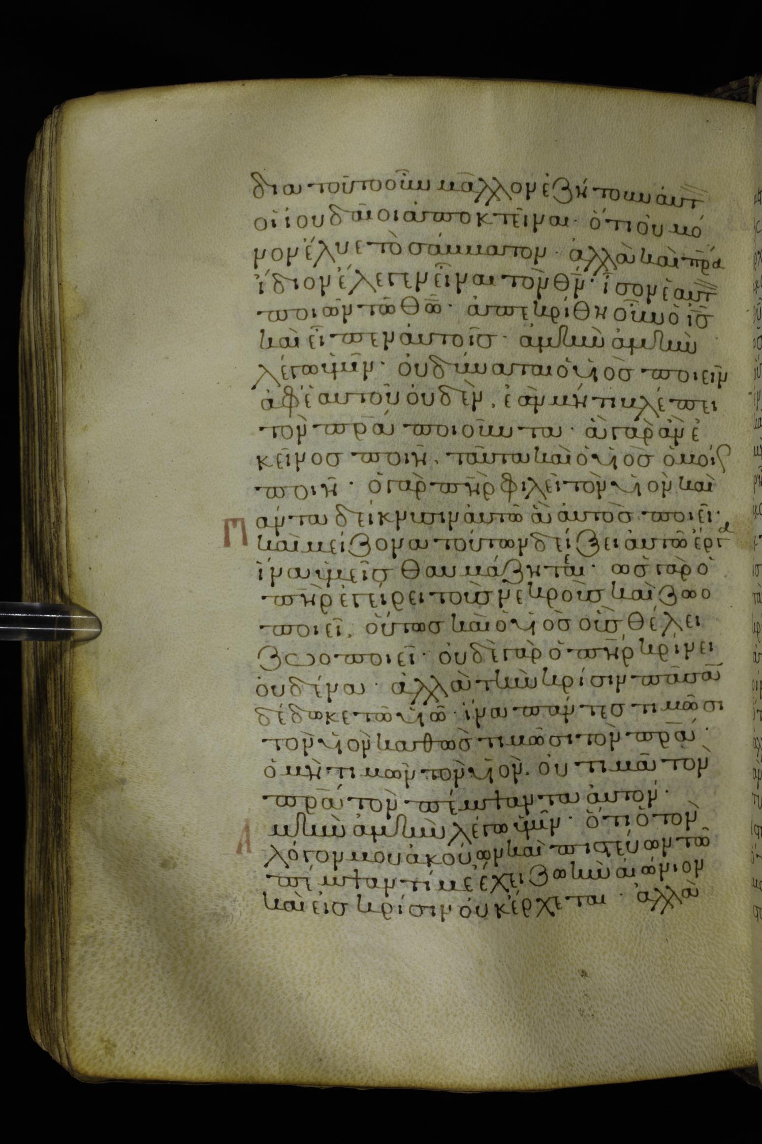 Twelfth century minuscule of the Gospels on parchment; 230 leaves, 1 column, 24-26 lines per column. Images were taken at the National Library of Greece in Athens.