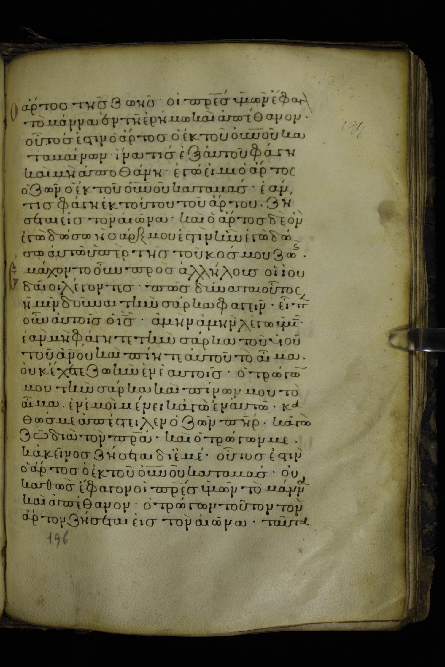 Twelfth century minuscule of the Gospels on parchment; 230 leaves, 1 column, 24-26 lines per column. Images were taken at the National Library of Greece in Athens.