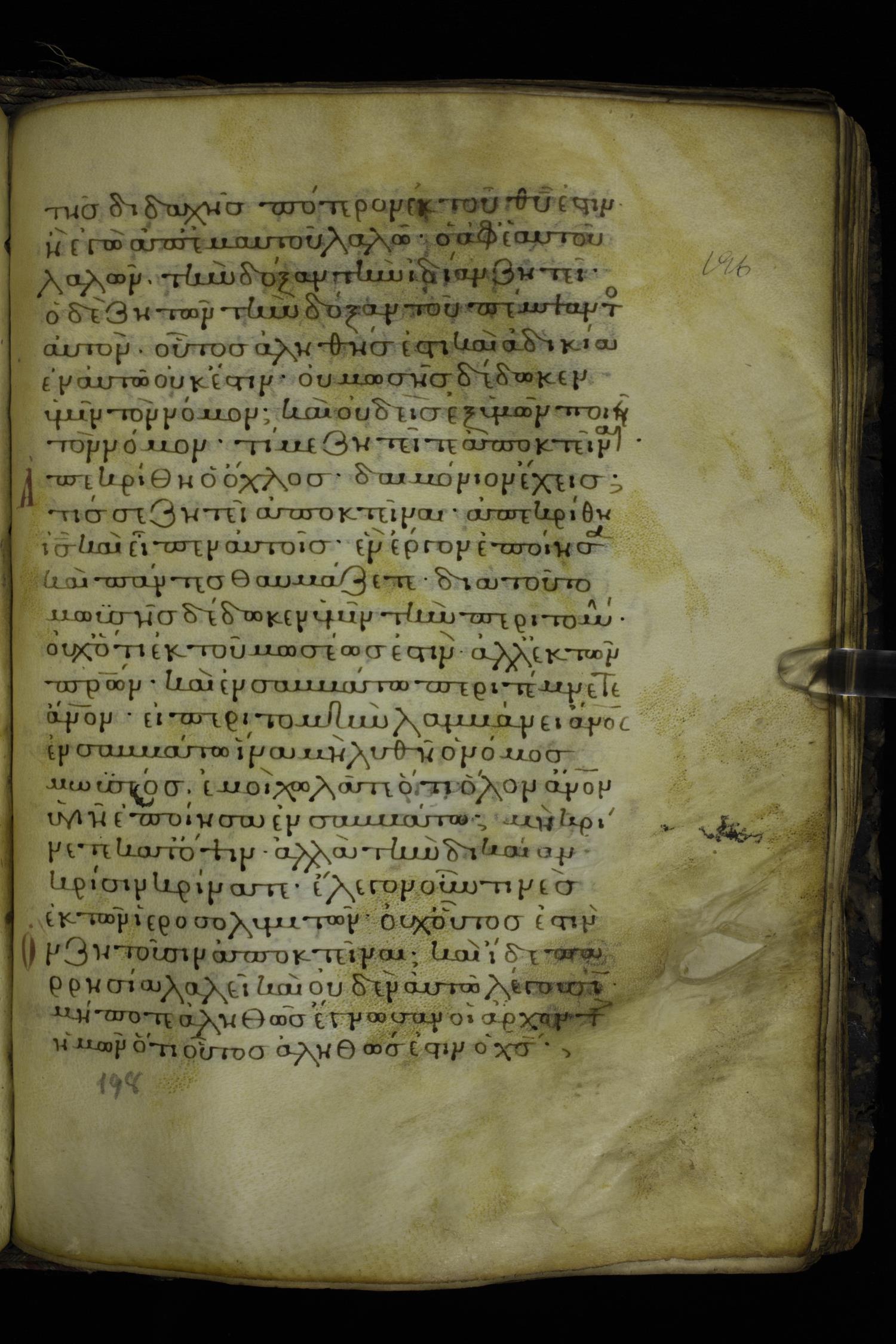 Twelfth century minuscule of the Gospels on parchment; 230 leaves, 1 column, 24-26 lines per column. Images were taken at the National Library of Greece in Athens.