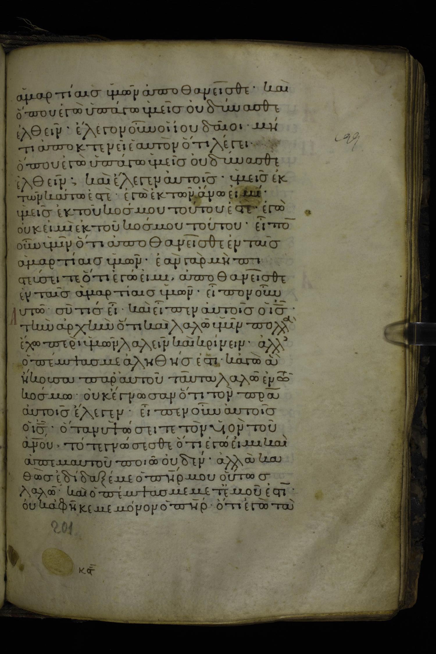 Twelfth century minuscule of the Gospels on parchment; 230 leaves, 1 column, 24-26 lines per column. Images were taken at the National Library of Greece in Athens.