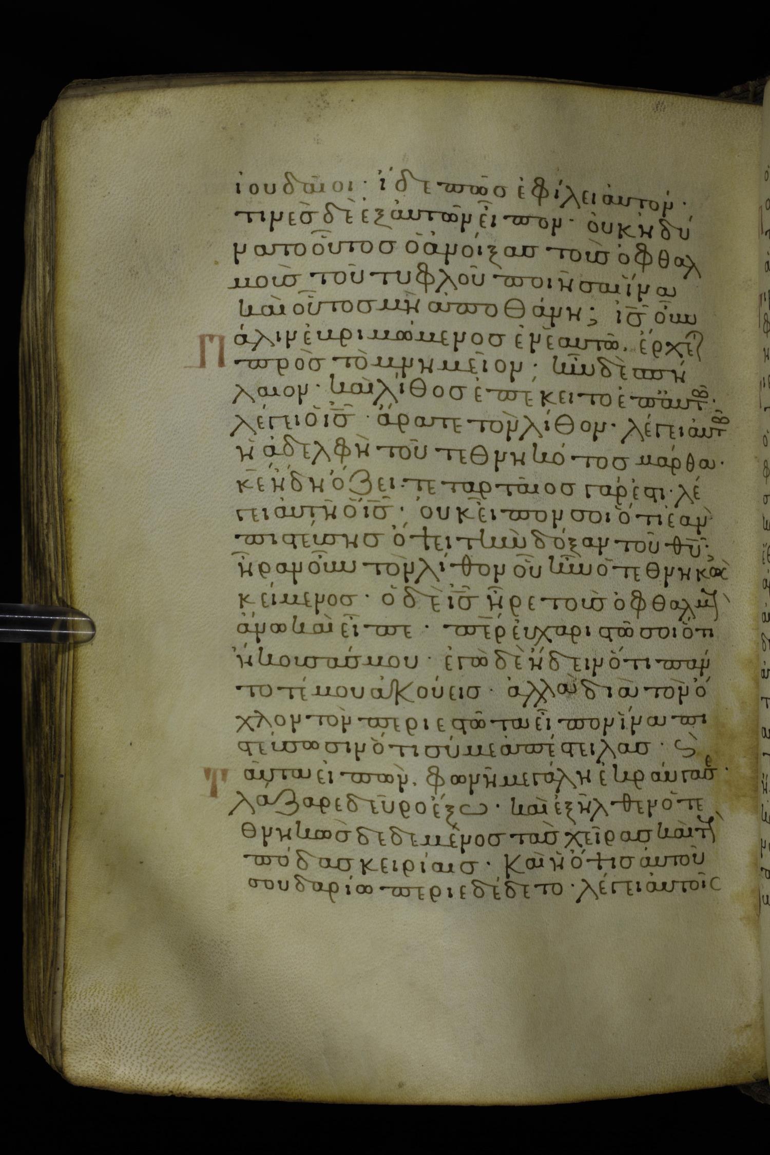 Twelfth century minuscule of the Gospels on parchment; 230 leaves, 1 column, 24-26 lines per column. Images were taken at the National Library of Greece in Athens.
