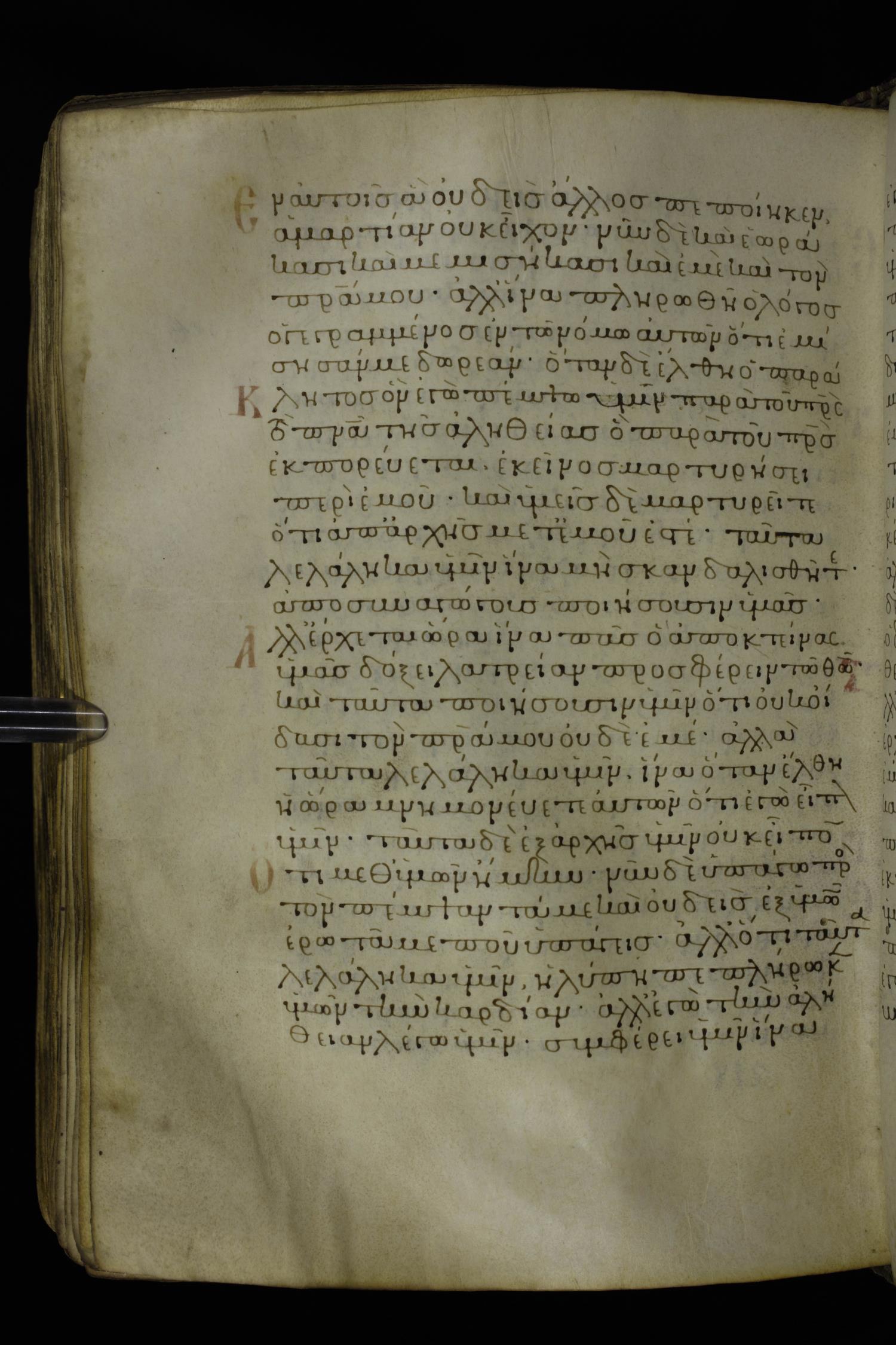 Twelfth century minuscule of the Gospels on parchment; 230 leaves, 1 column, 24-26 lines per column. Images were taken at the National Library of Greece in Athens.