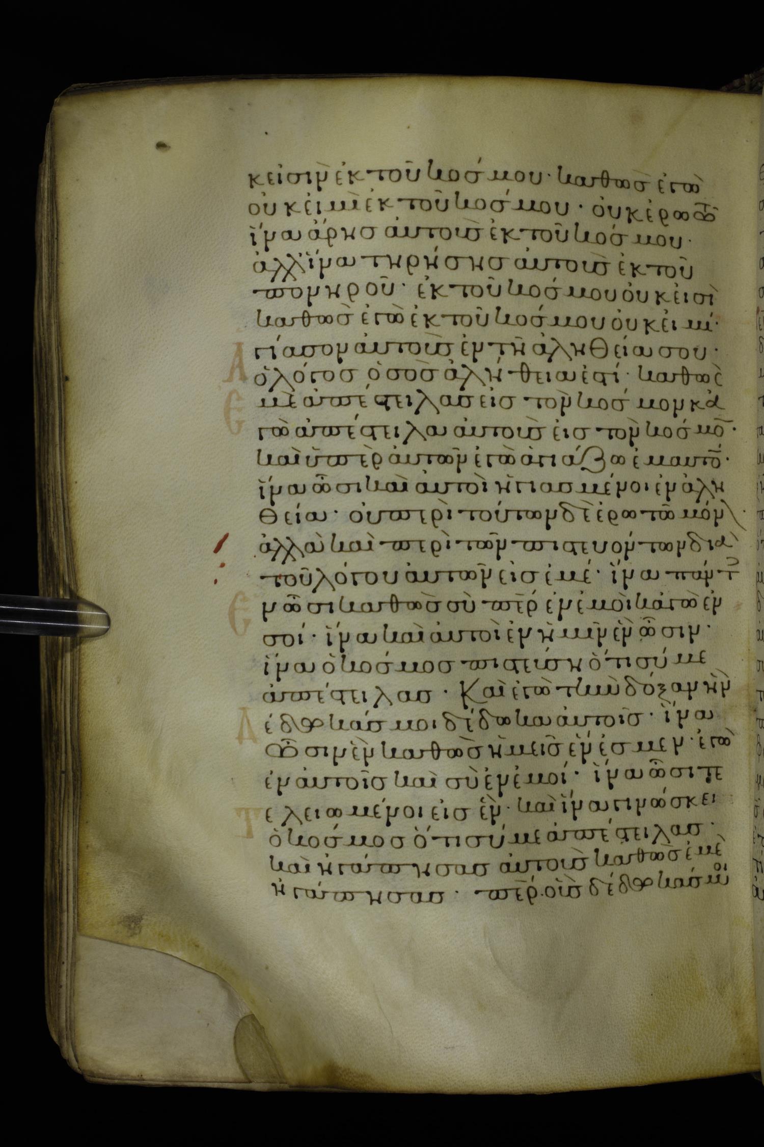 Twelfth century minuscule of the Gospels on parchment; 230 leaves, 1 column, 24-26 lines per column. Images were taken at the National Library of Greece in Athens.