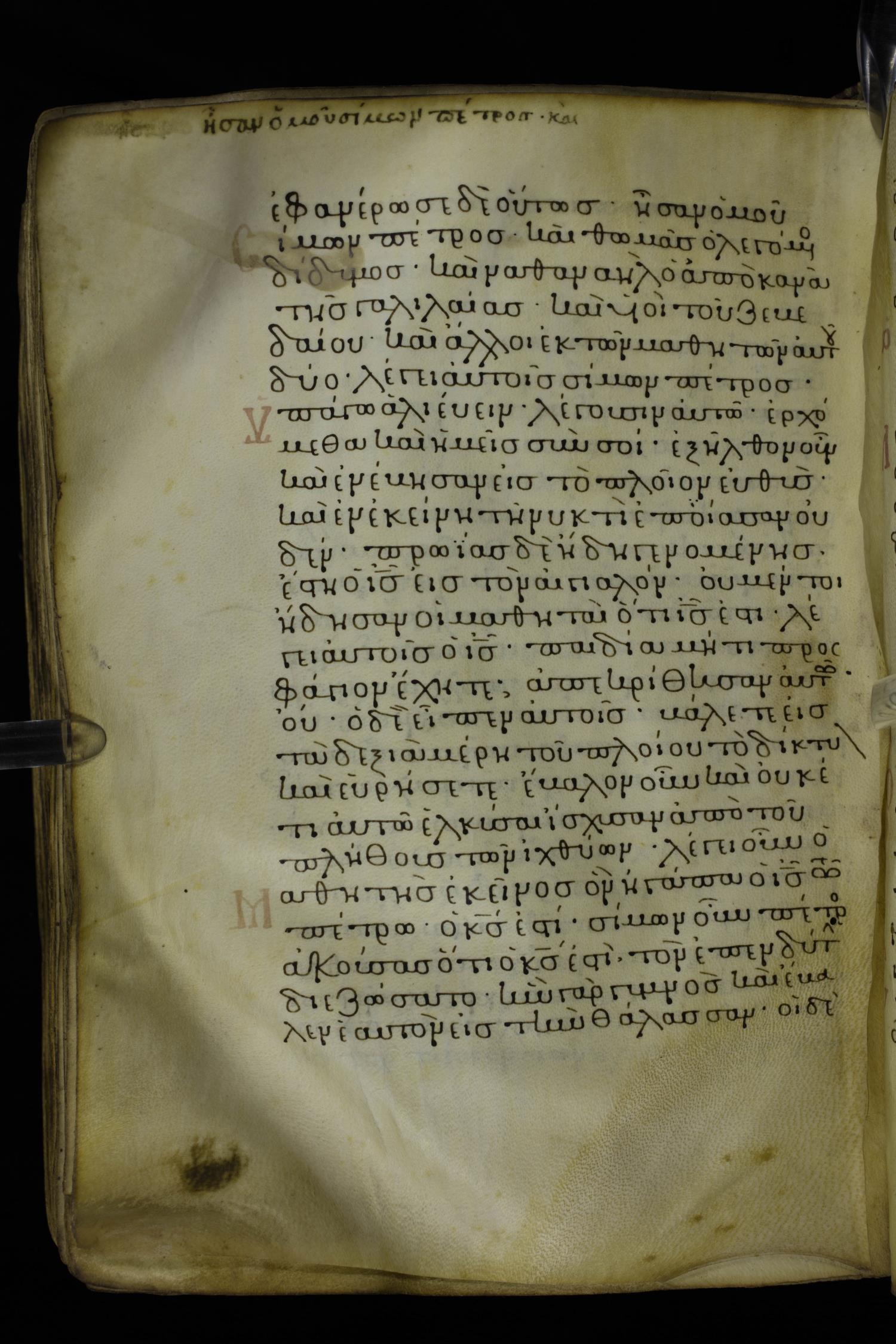 Twelfth century minuscule of the Gospels on parchment; 230 leaves, 1 column, 24-26 lines per column. Images were taken at the National Library of Greece in Athens.