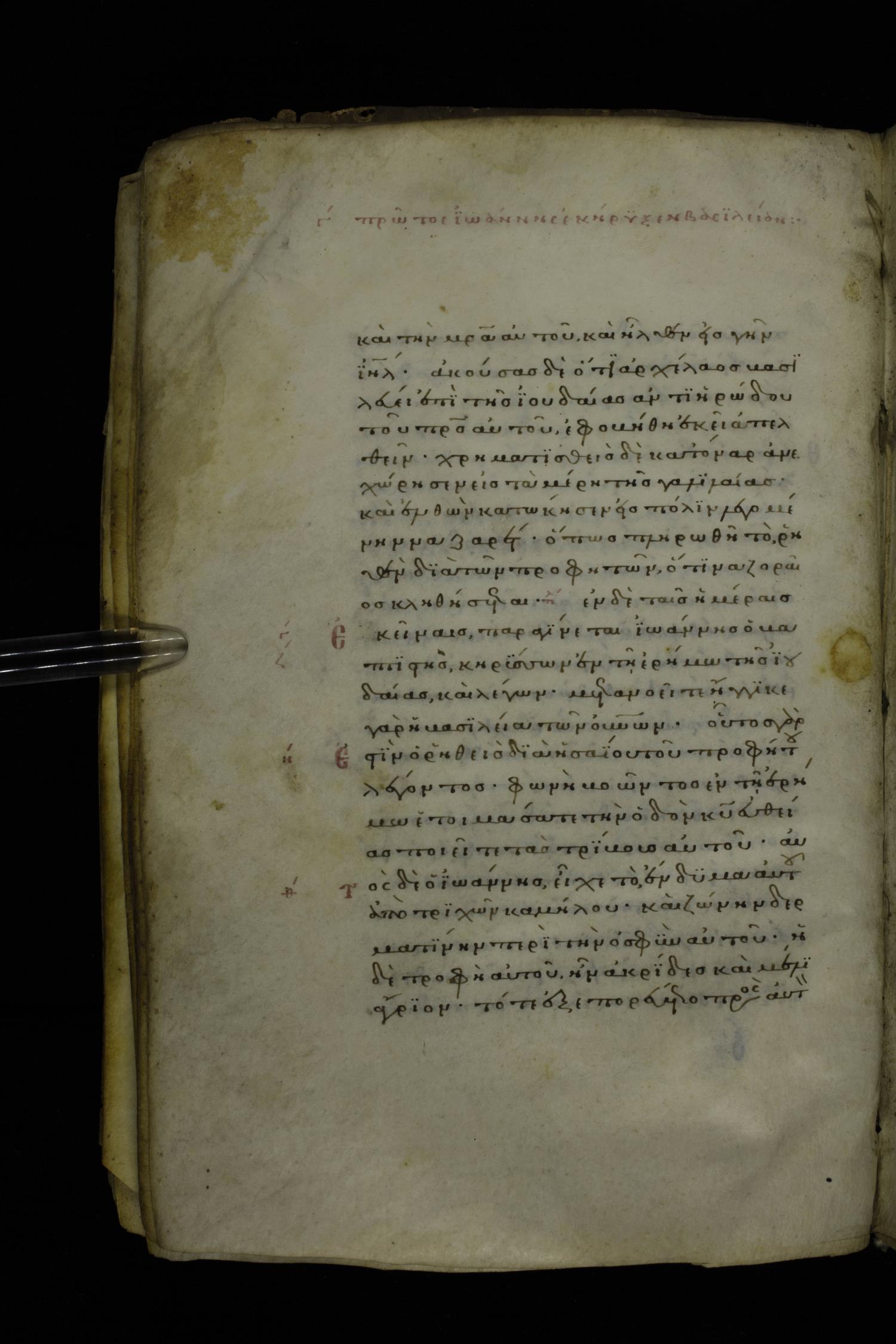 Fourteenth century minuscule dated to 1311 of the Gospels on parchment; 248 leaves, 1 column, 23 lines per column. Images were taken at the National Library of Greece in Athens.